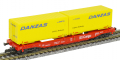 | kapsový nákladní vůz červený se dvěma výměnnými kontejnery „Danzas“ |