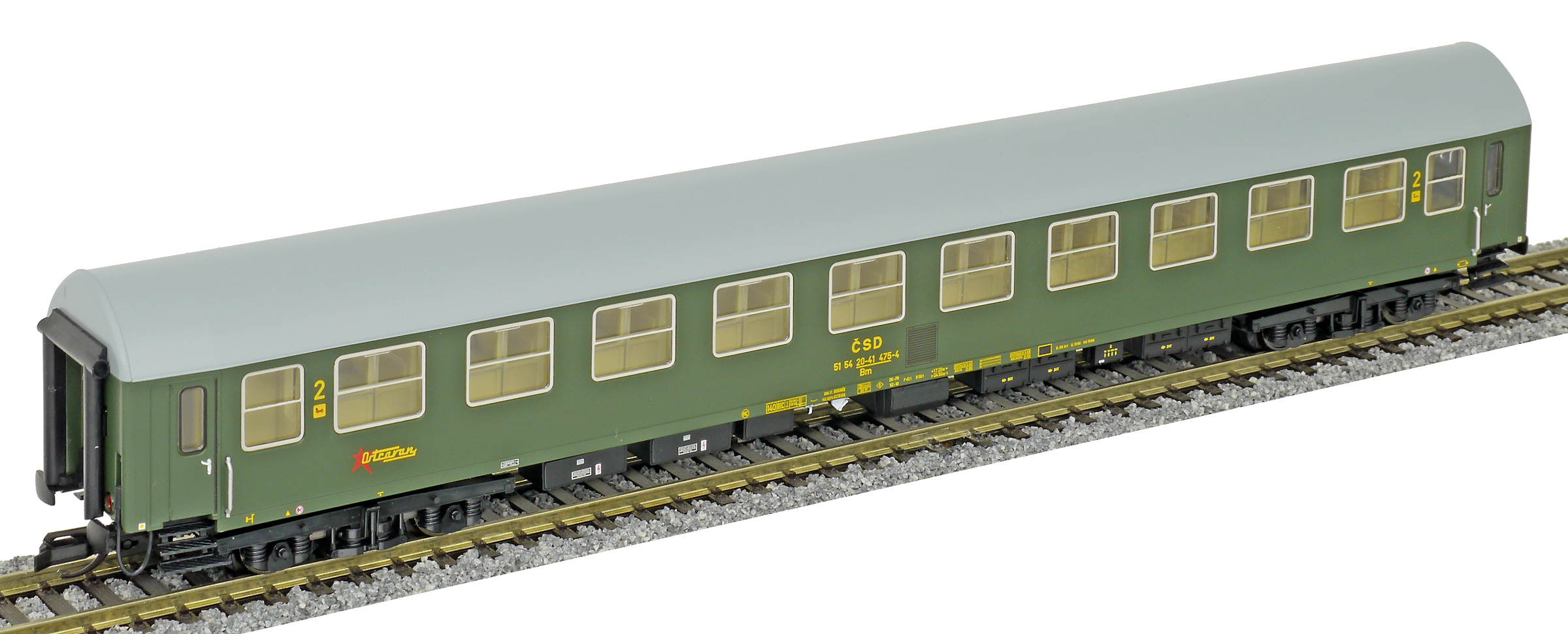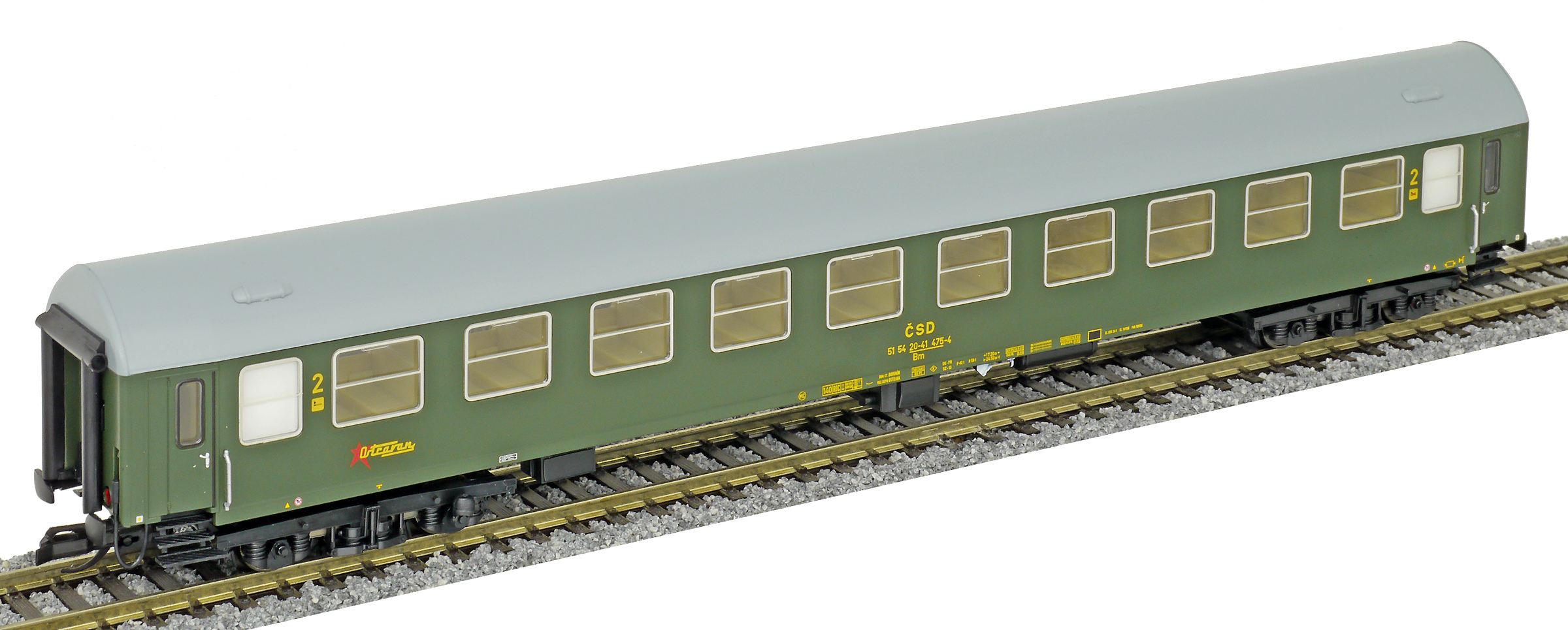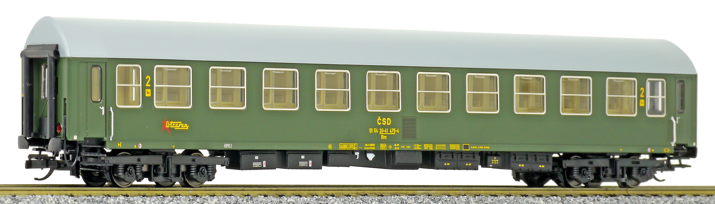 | rychlíkový vůz zelený s šedou střechou 2. tř. „Ostravan“ |