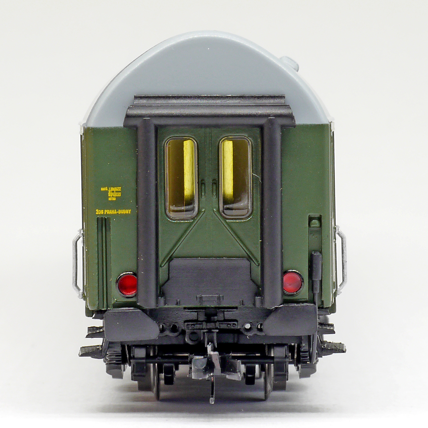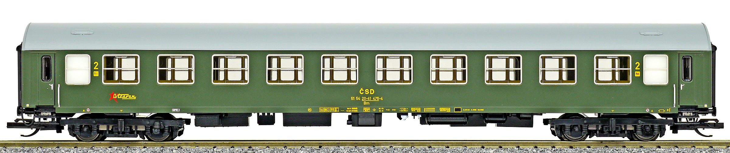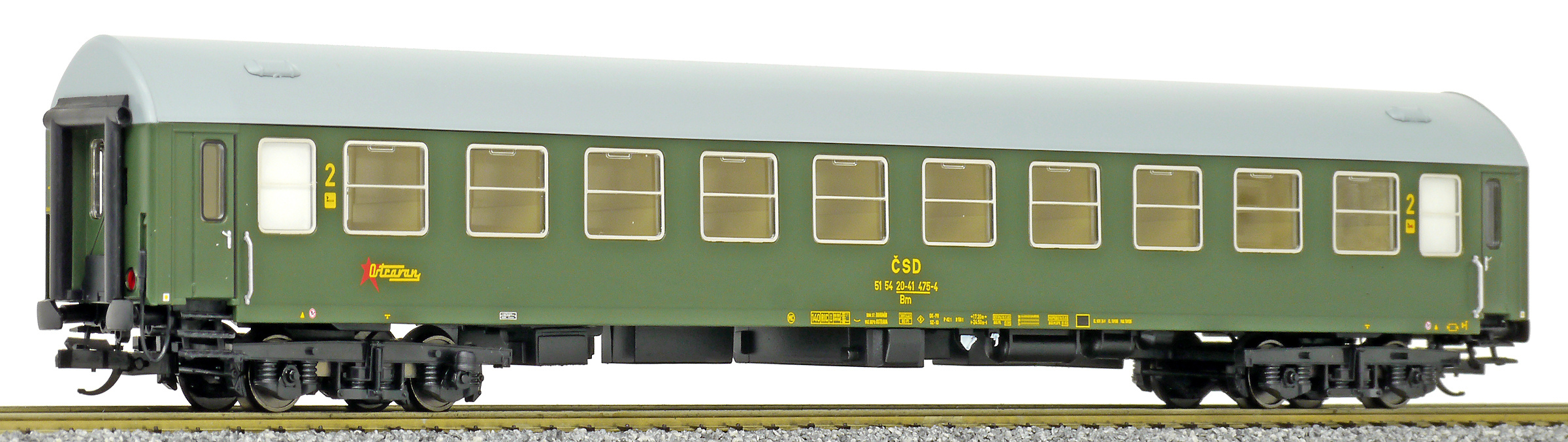 | rychlíkový vůz zelený s šedou střechou 2. tř. „Ostravan“ |