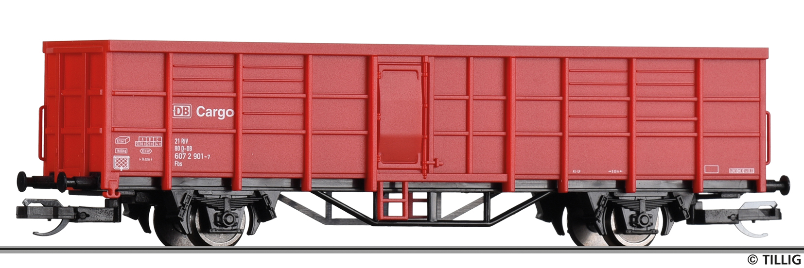 | otevřený vysokostěnný nákladní vůz červený „DB Cargo“ |