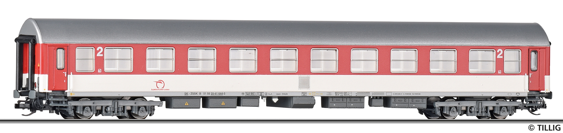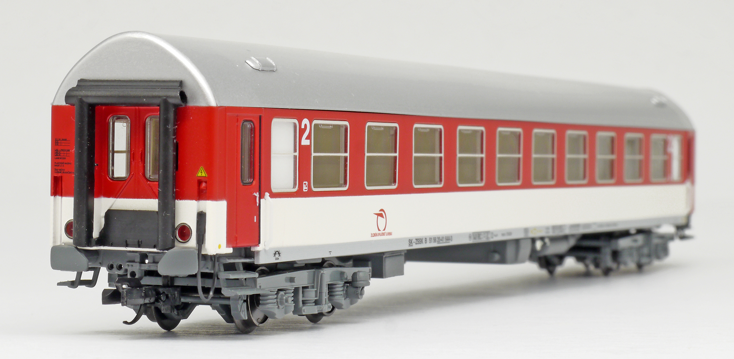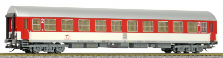 | rychlíkový vůz červený-bílý s šedou střechou 2. tř. |