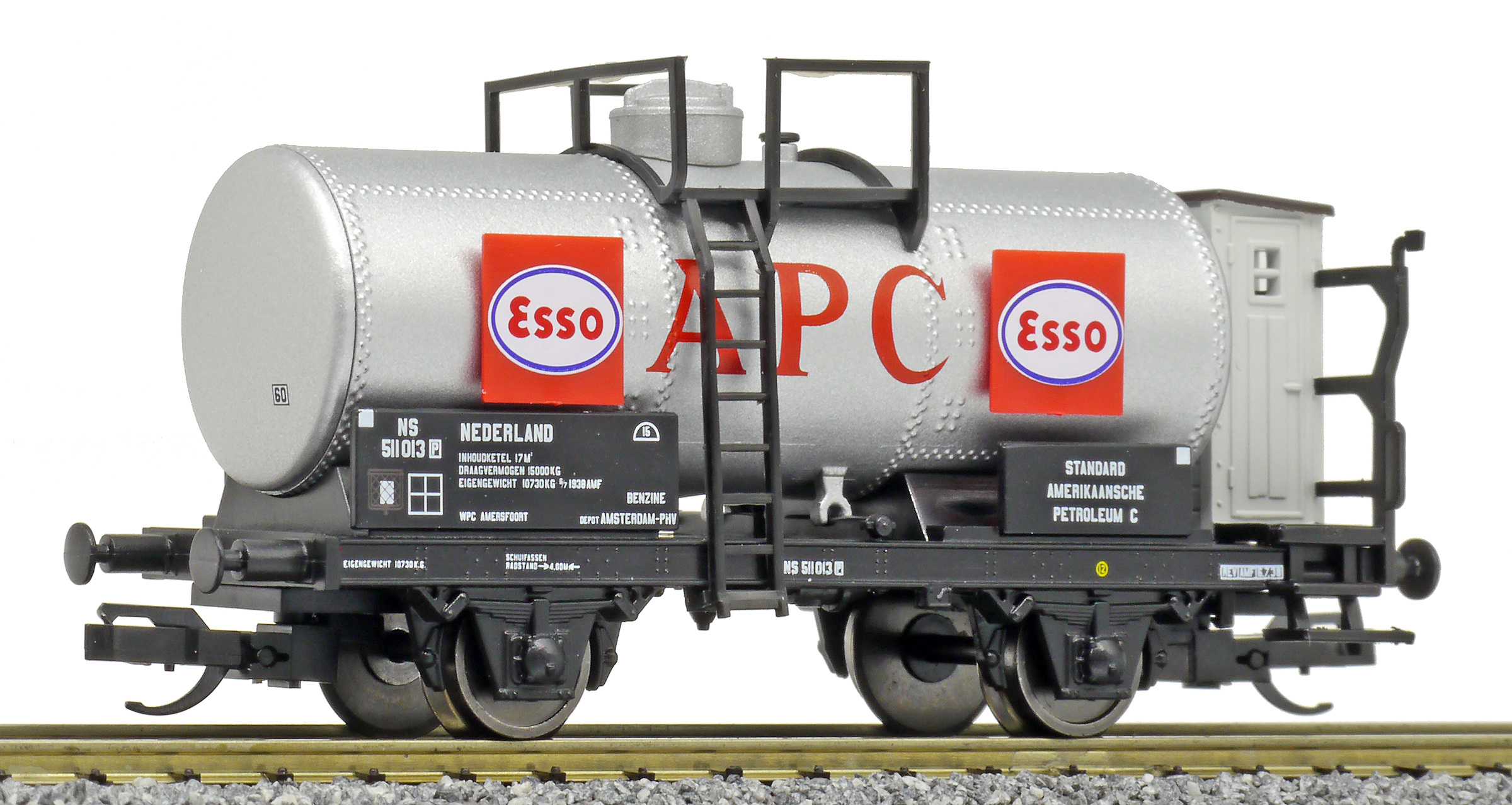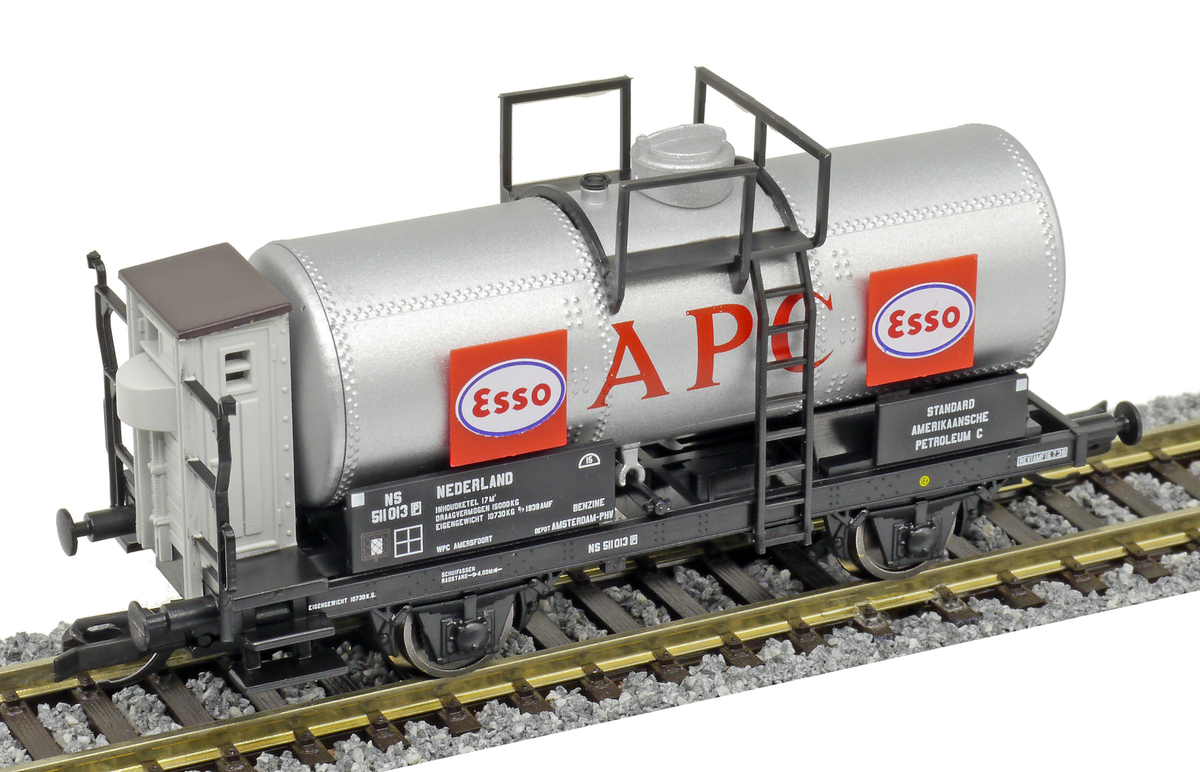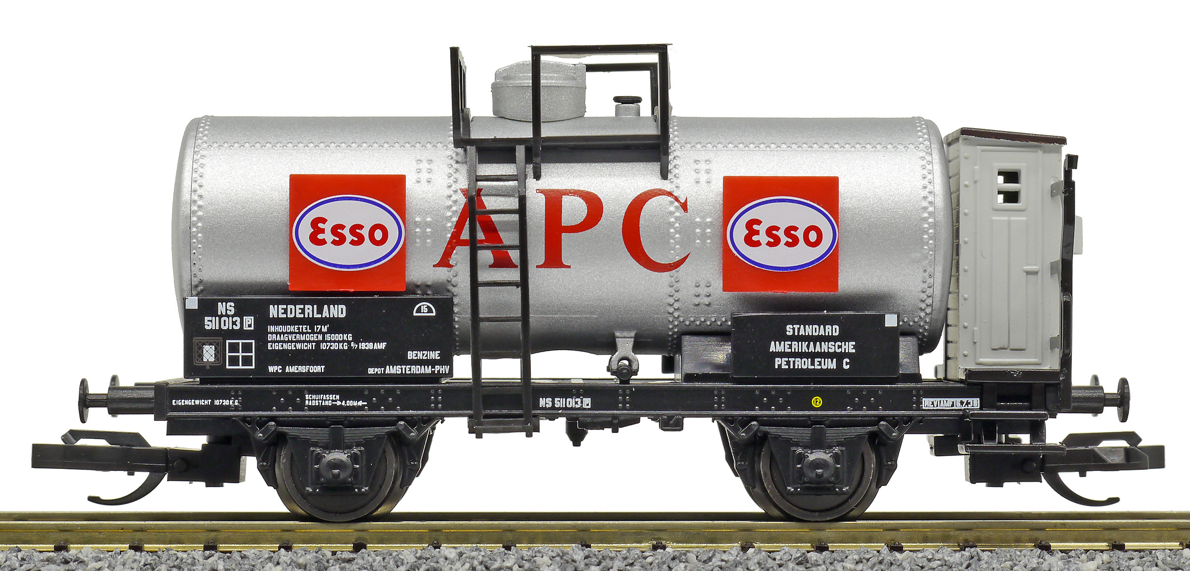 | kotlový vůz stříbrný s brzdařskou budkou „APC/ESSO“ |