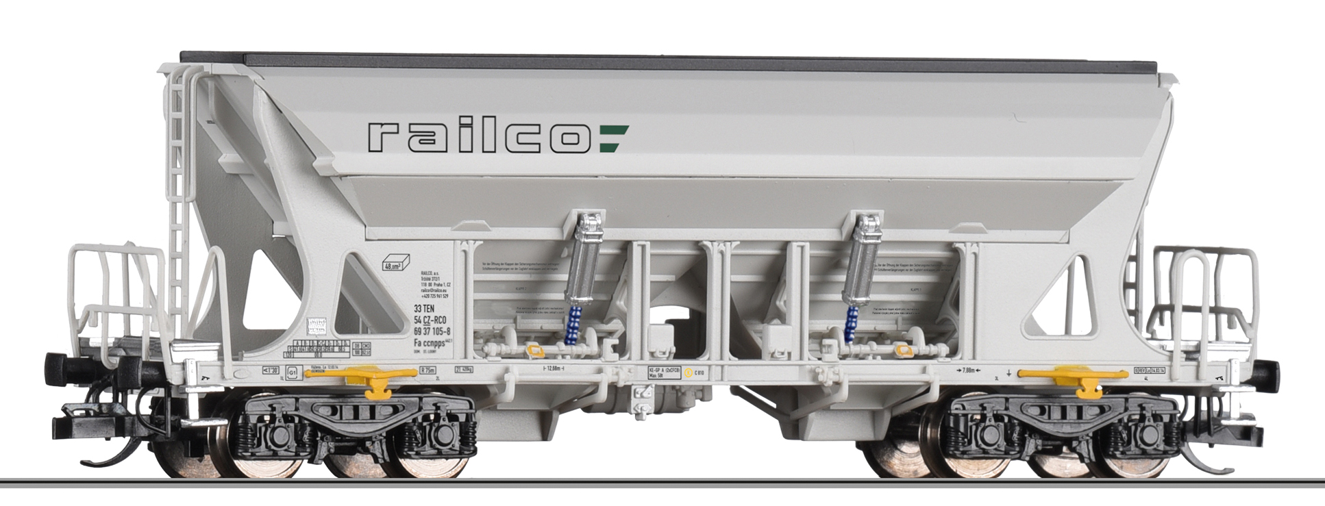 | nákladní samovýsypný vůz šedý s logem „Railco“ |