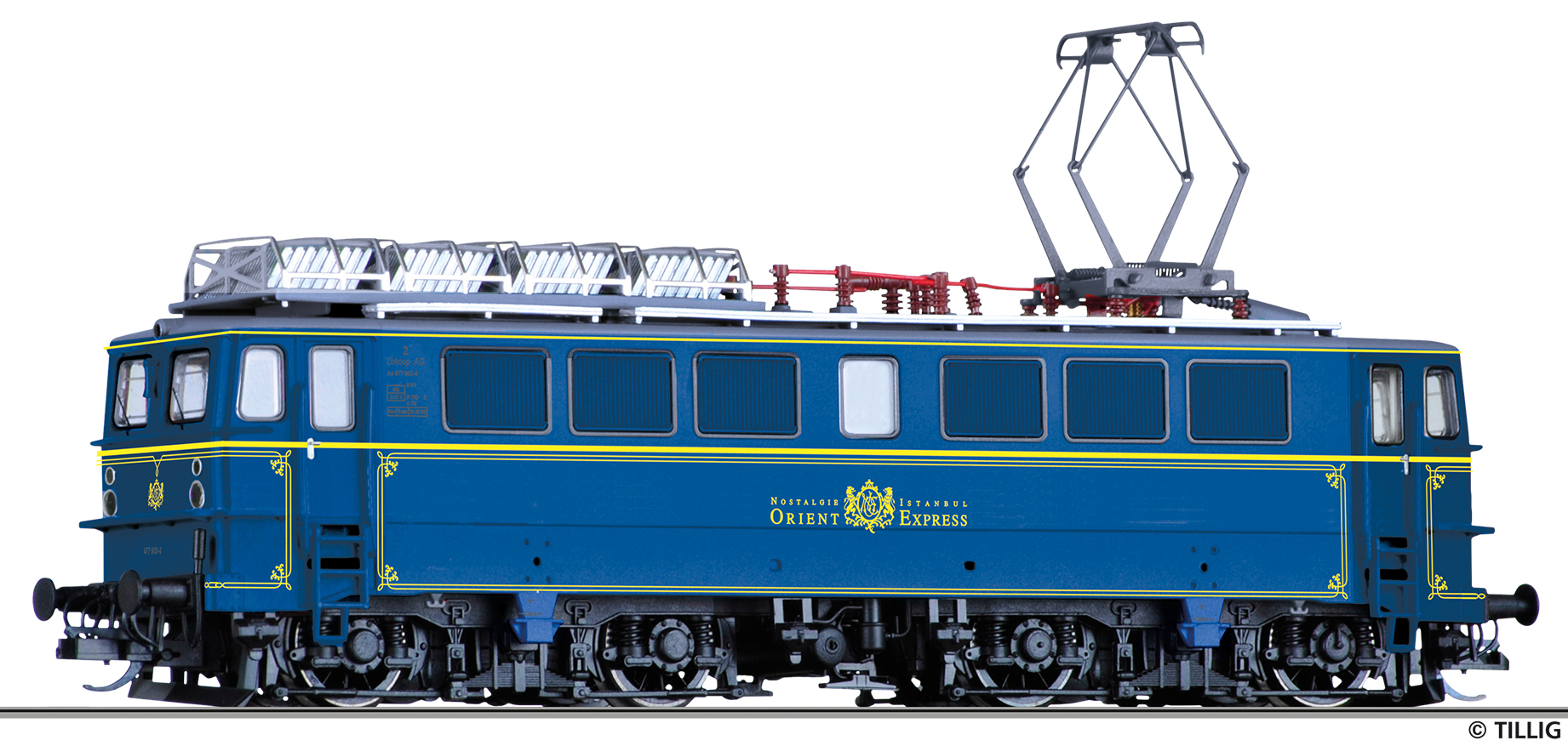 | elektrická lokomotiva v barevném schematu „Orient Express“ |