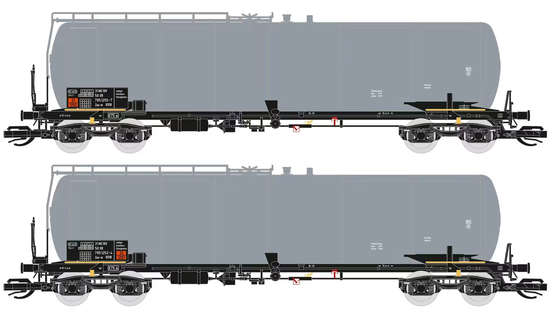 | set dvou šedých kotlových vozů na lehké oleje |