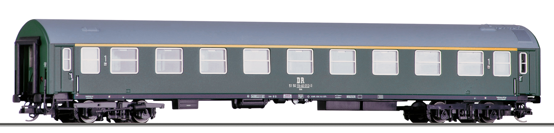 | rychlíkový vůz zelený s šedou střechou 1. tř. |