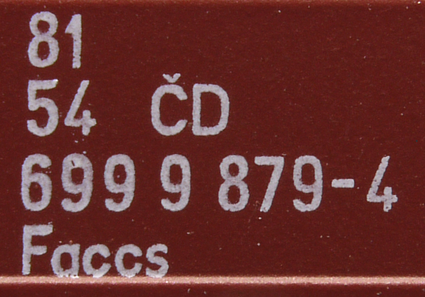| • 81 54 699 9 879-4 | → | nákladní, s podvozky, ve vlastnictví železniční správy, pro mezinárodní dopravu dle zvláštních umluv |