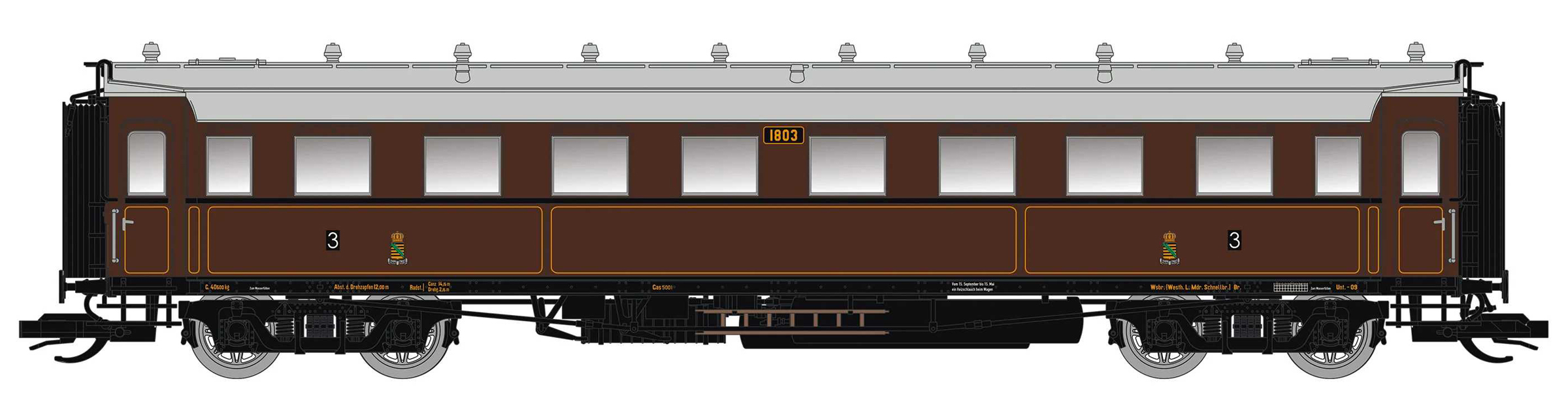 | oddílový osobní vůz hnědý s šedou střechou 3. tř. |