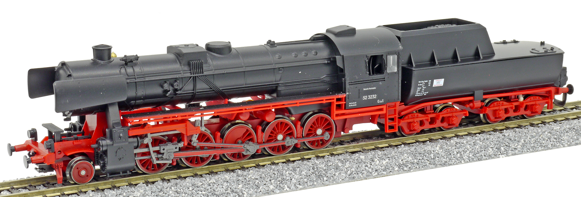Kód   02274  [Lokomotivy] → [Parní] → [BR 52] → 02274: černá s červeným pojezdem a kouřovými plechy