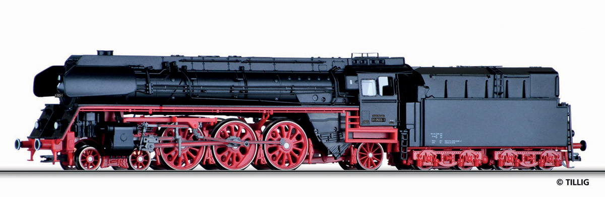 Kód   1018202  [Lokomotivy] → [Parní] → [BR 01] → 1018202: černá s červeným pojezdem, kouřovými plechy a olejovým tendrem BR 01.5