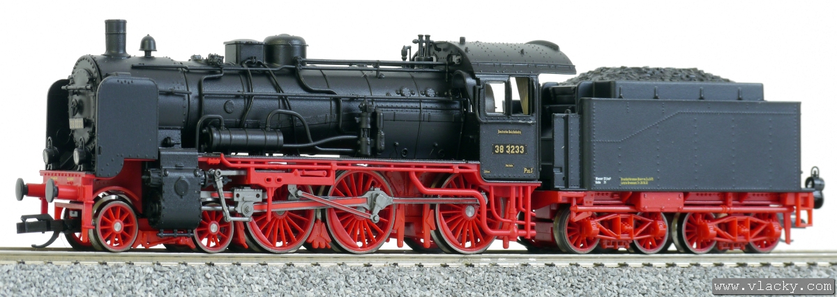 Kód   02033 E  [Lokomotivy] → [Parní] → [BR 38] → 02033 E: parní lokomotiva černá s červenými koly