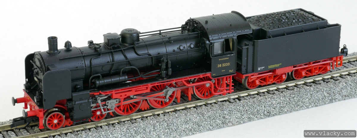 Kód   02025  [Lokomotivy] → [Parní] → [BR 38] → 02025: černá s červeným pojezdem a kouřovými plechy