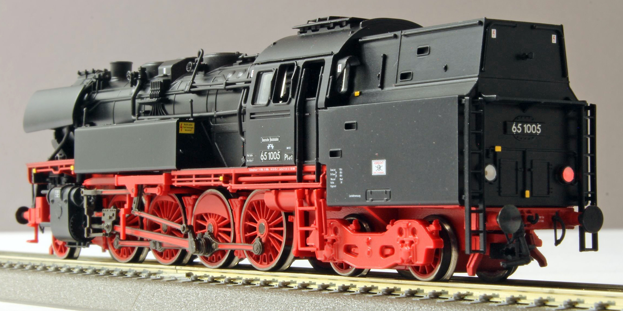 Kód   72600  [Lokomotivy] → [Parní] → [BR 65] → 72600: černá s červeným pojezdem a kouřovými plechy