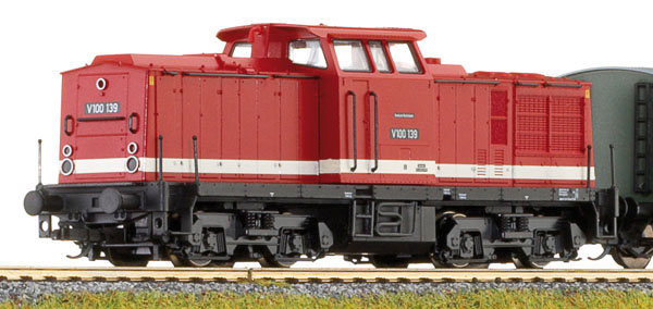 Kód   501733  [Lokomotivy] → [Motorové] → [V 100] → 501733: dieselová lokomotiva v barevném schematu „LOKOMOTION Gesellschaft für Schienentraktion mbHR