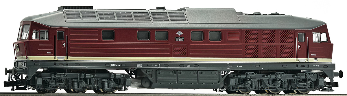 Kód   05774  [Lokomotivy] → [Motorové] → [BR 132] → 05774: dieselová lokomotiva v oritentální červené, bílý proužek, černá střecha, rám a pojezd