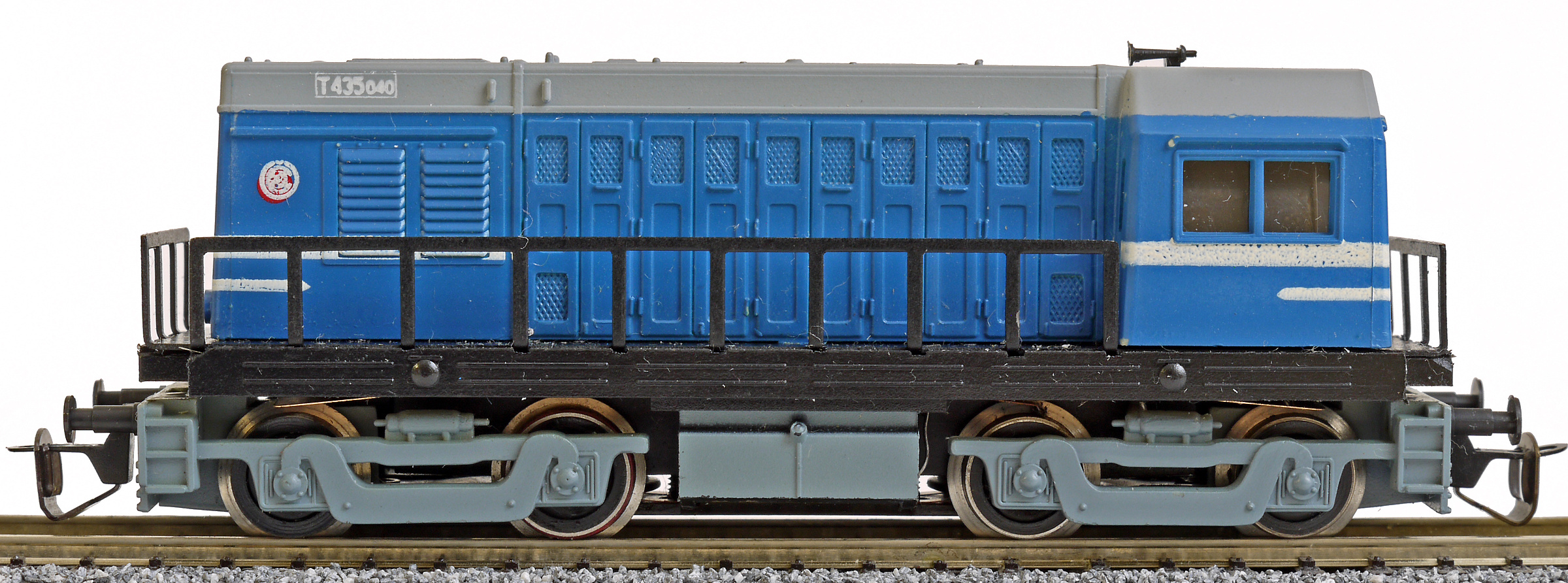 dieselová lokomotiva modrá s šedou střechou a černým pojezdem