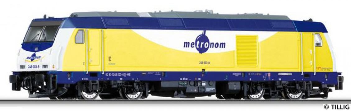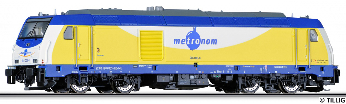 Kód   501198  [Lokomotivy] → [Motorové] → [BR 246] → 501198: dieselová lokomotiva modrá-stříbrná s černým pojezdem „Tillig-TT-Club“