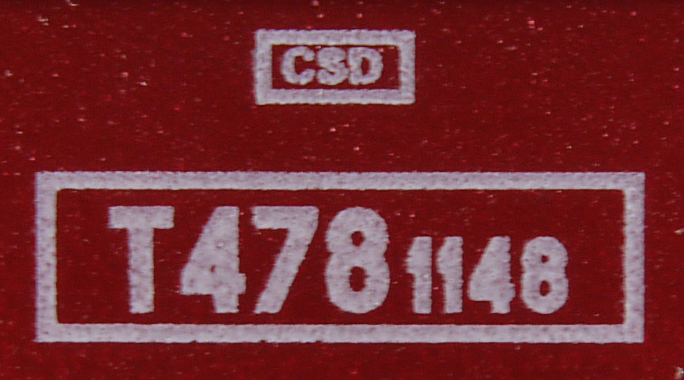 Kód   CSD-T478-1120  [Lokomotivy] → [Motorové] → [T478.1 „Bardotka”] → CSD-T478-1120: dieselová lokomotiva červená, tmavěšedá střecha, rám a podvozky