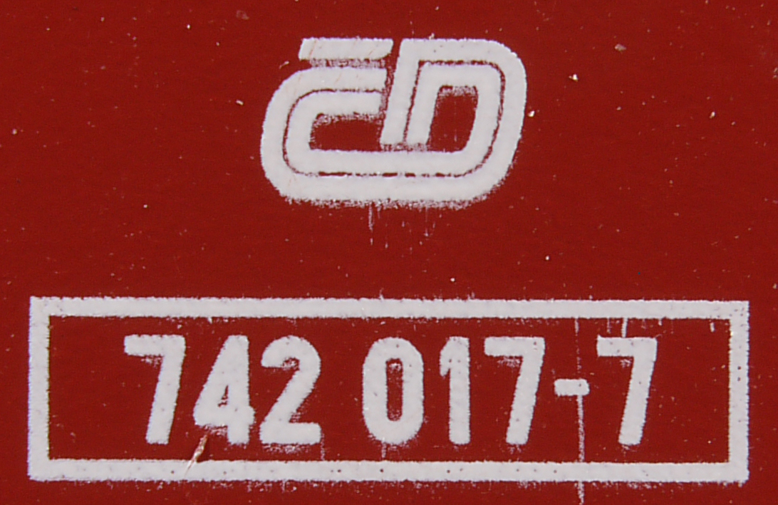 Kód   CD-742-218  [Lokomotivy] → [Motorové] → [T466.2/T448.0] → CD-742-218: dieselová lokomotiva červená s šedou střechou, rámem a pojezdem a výstražným pruhem