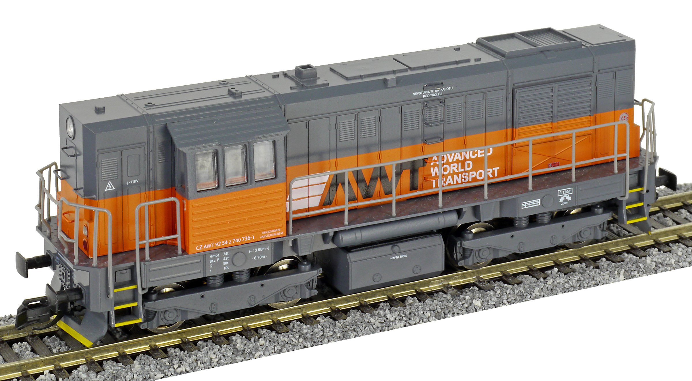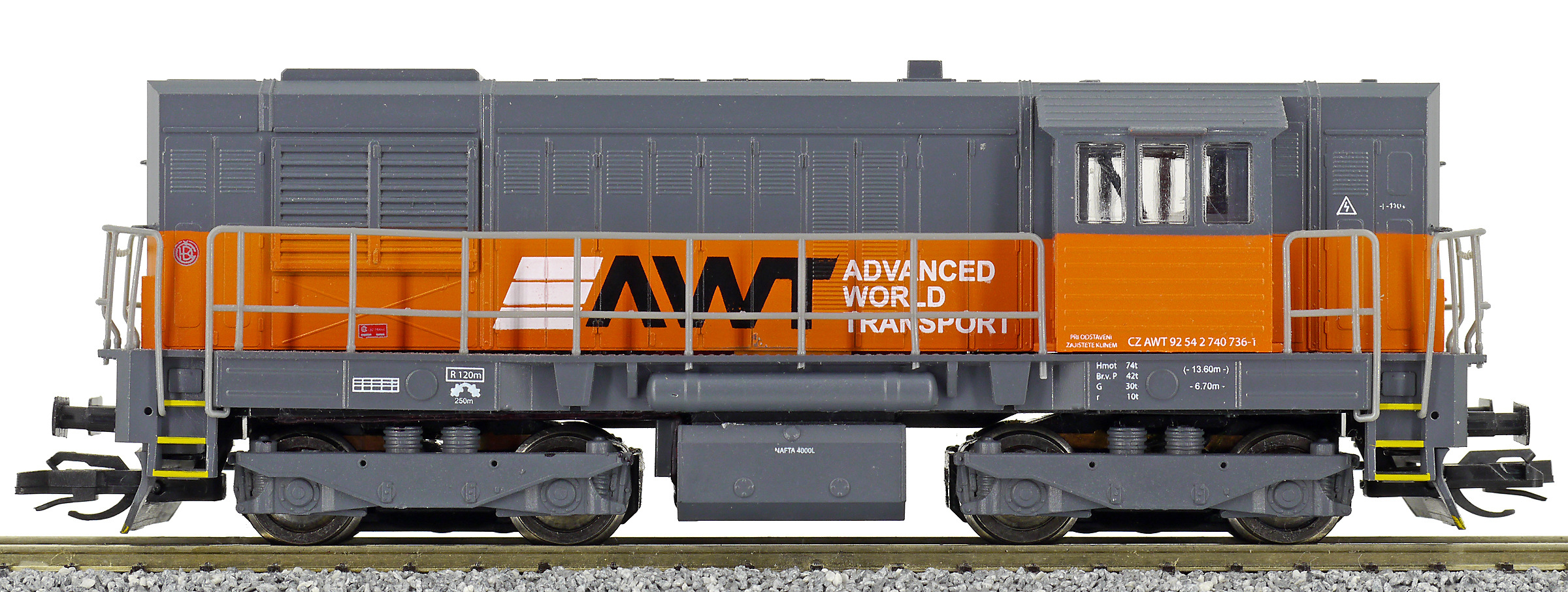 Popis   dieselová lokomotiva tmavě šedá s oranžovým pásem „AWT“