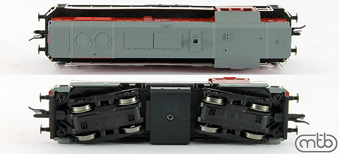 Popis   dieselová lokomotiva červená s šedou střechou, rámem a tmavě šedým pojezdem