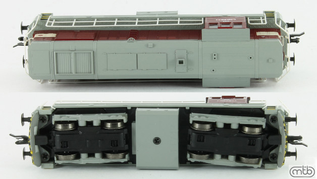 Kód   501826  [Lokomotivy] → [Motorové] → [T466.2/T448.0] → 501826: dieselová lokomotiva červená-krémová střecha, rám a pojezd