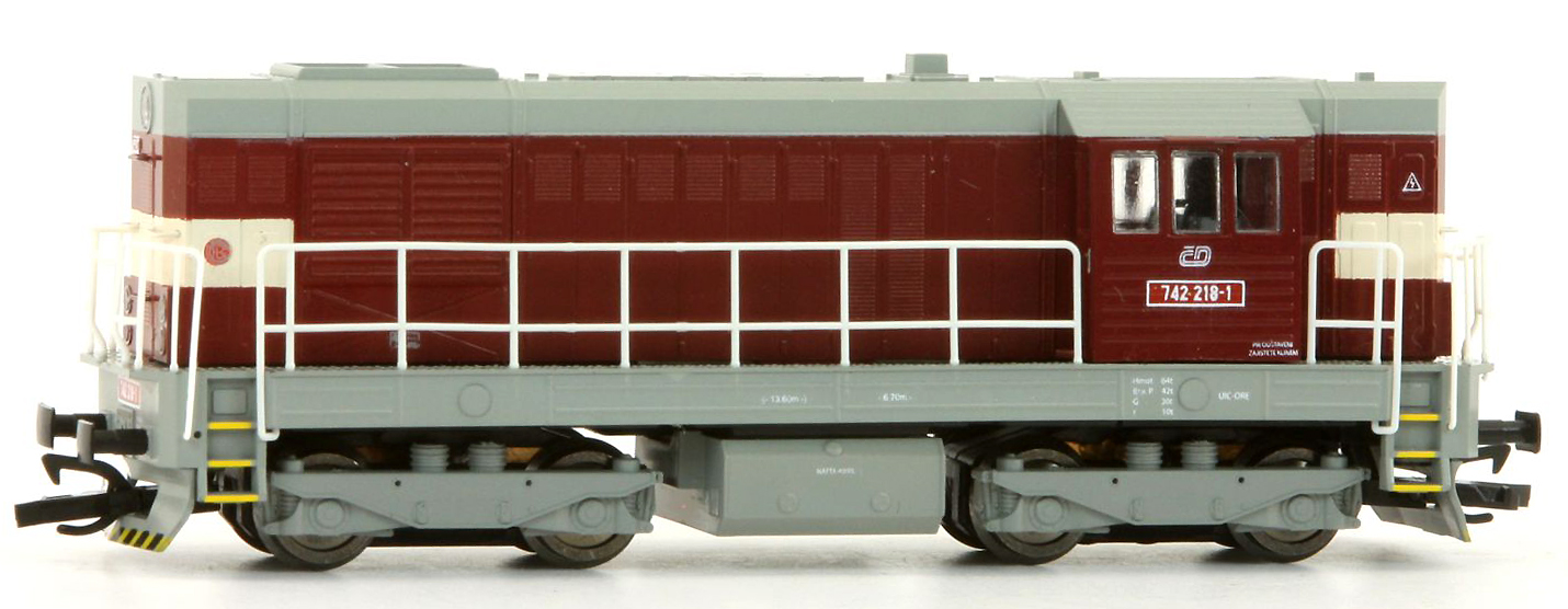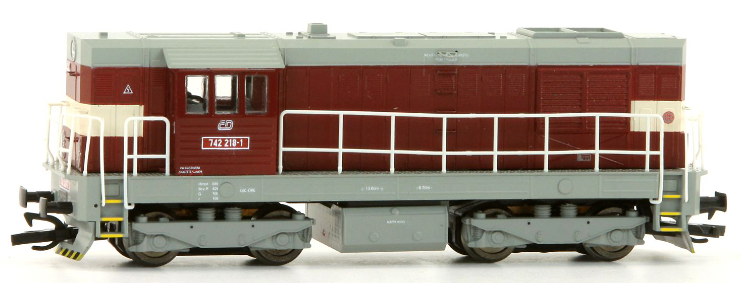 Kód   02767  [Lokomotivy] → [Motorové] → [T466.2/T448.0] → 02767: dieselová lokomotiva červená-šedá, bílé zábradlí