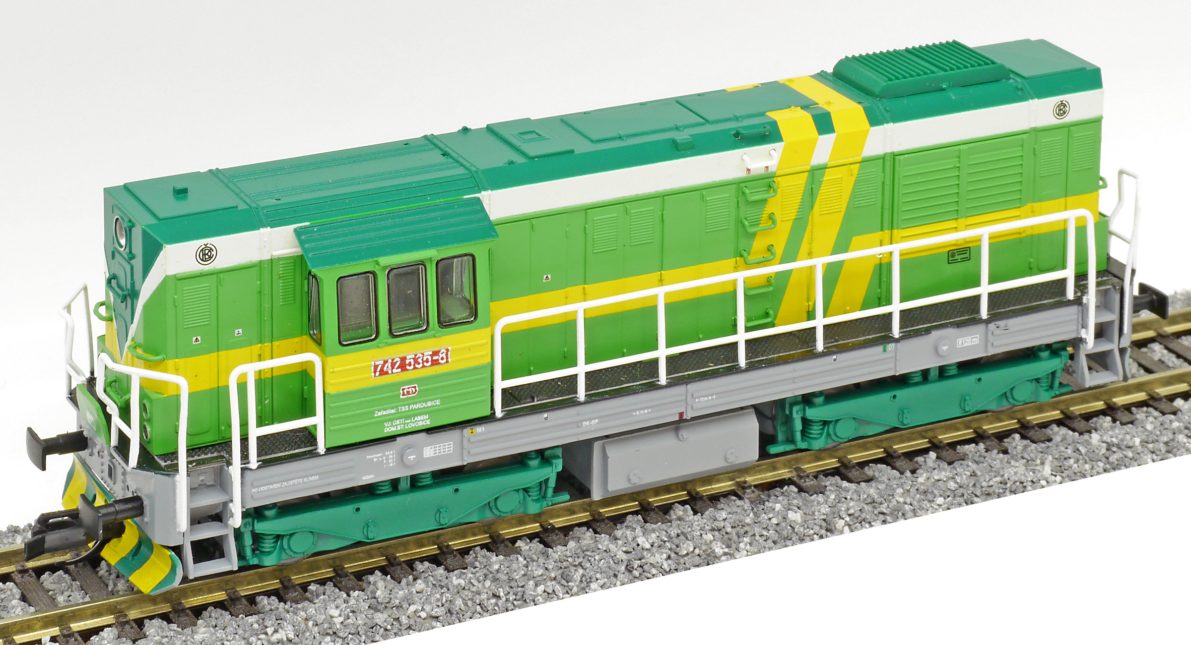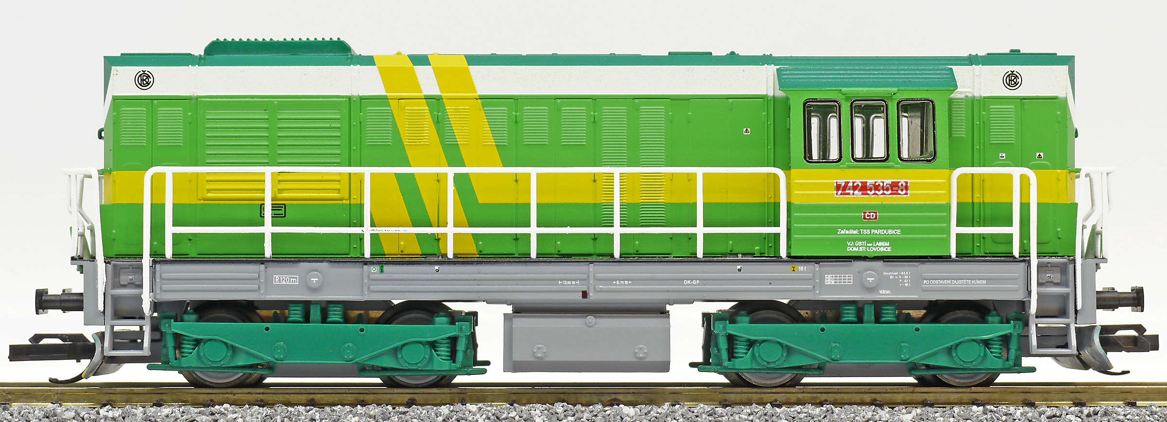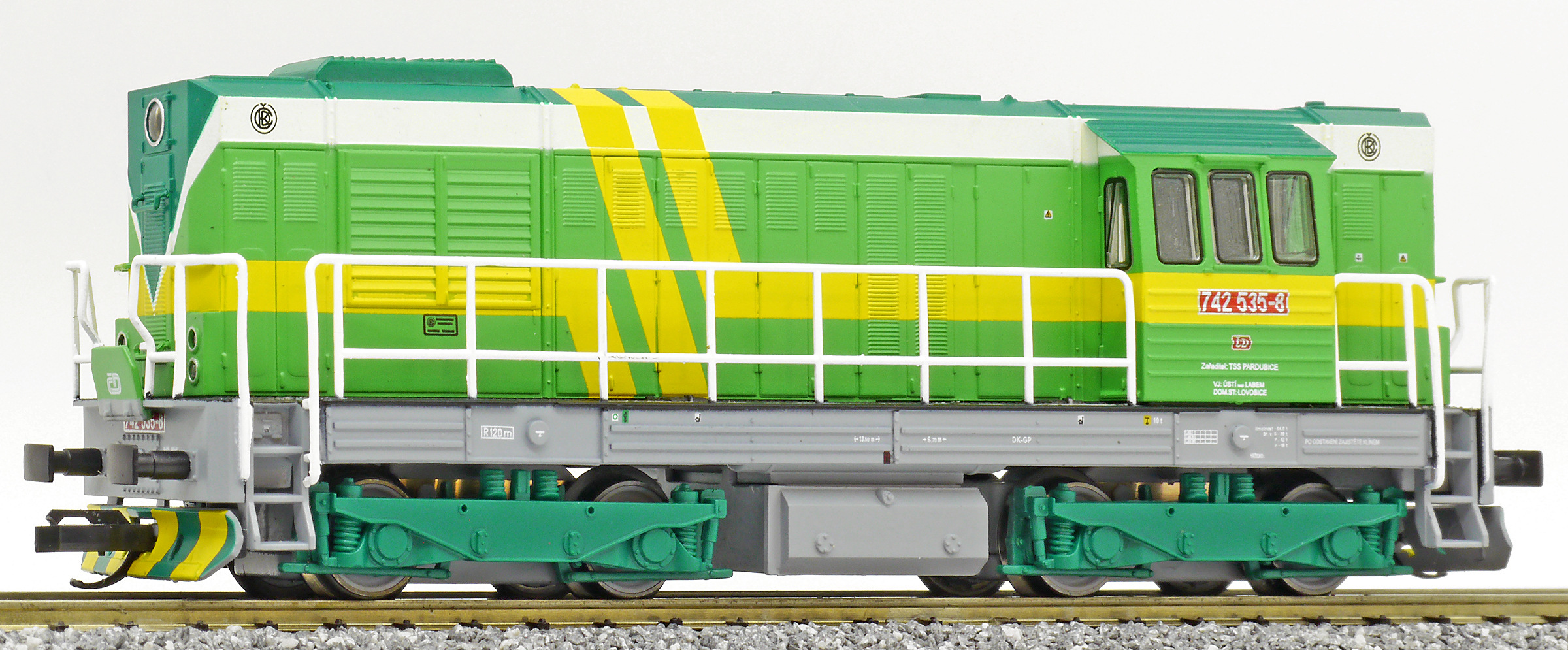 Kód   TT743-009  [Lokomotivy] → [Motorové] → [T466.2/T448.0] → TT743-009: dieselová lokomotiva zelená se žlutými pruhy
