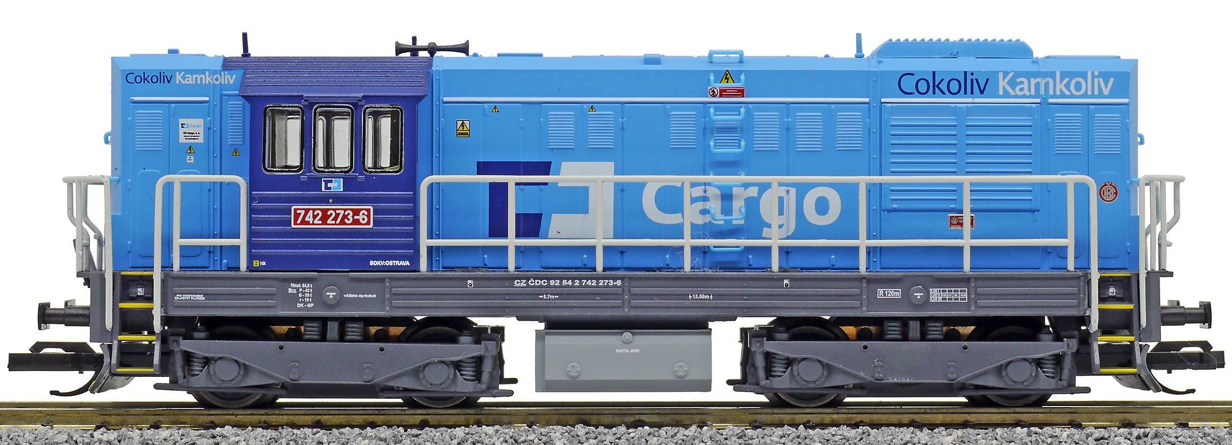 Kód   TT740 420   [Lokomotivy] → [Motorové] → [T466.2/T448.0] → TT740 420 : dieselová lokomotiva modrá s černým pojedem, šedá střecha