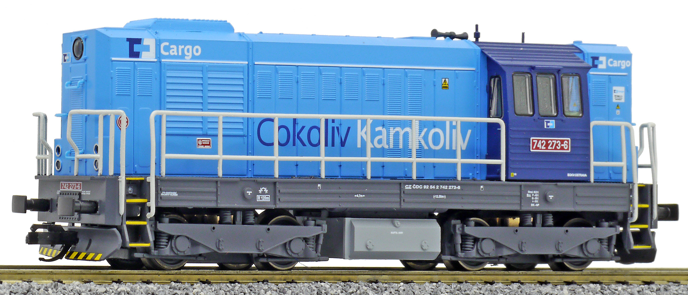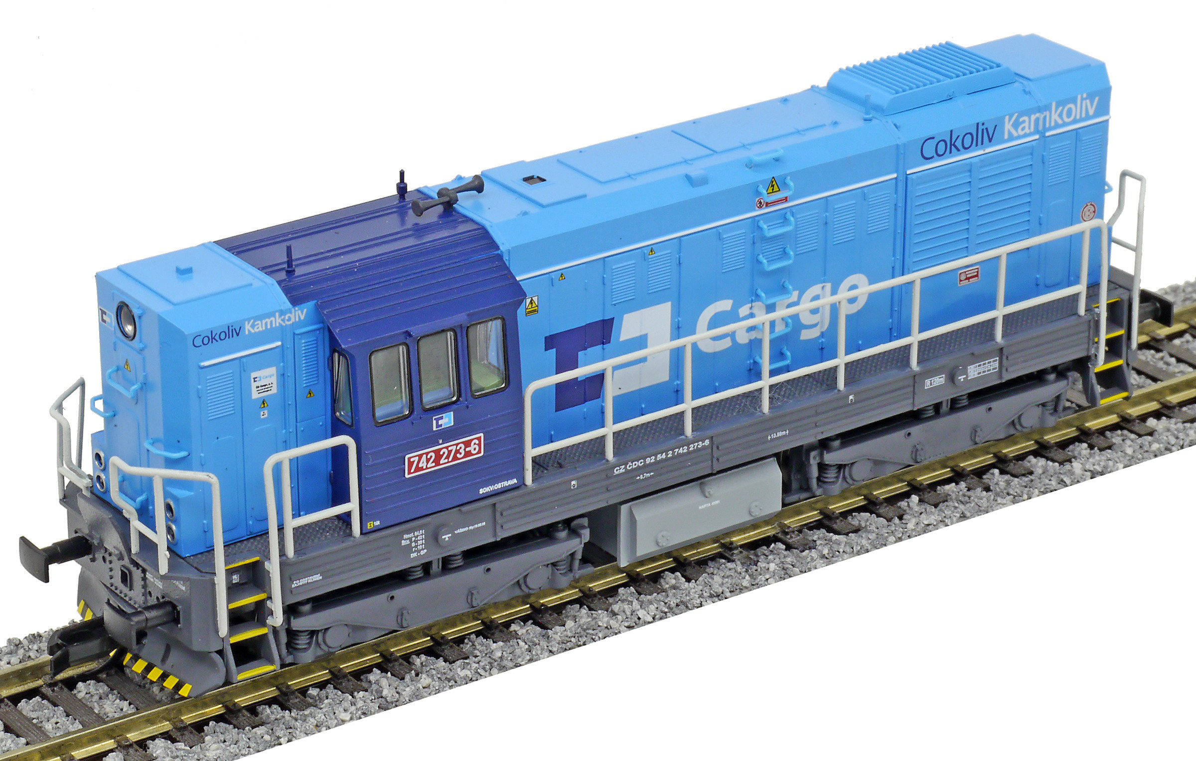 Kód   CD 743 002  [Lokomotivy] → [Motorové] → [T466.2/T448.0] → CD 743 002: dieselová lokomotiva v barevné kombinaci modrá-bílá „Elektronik“