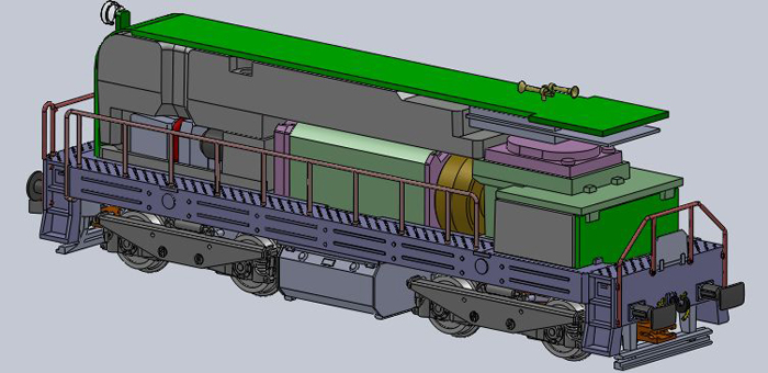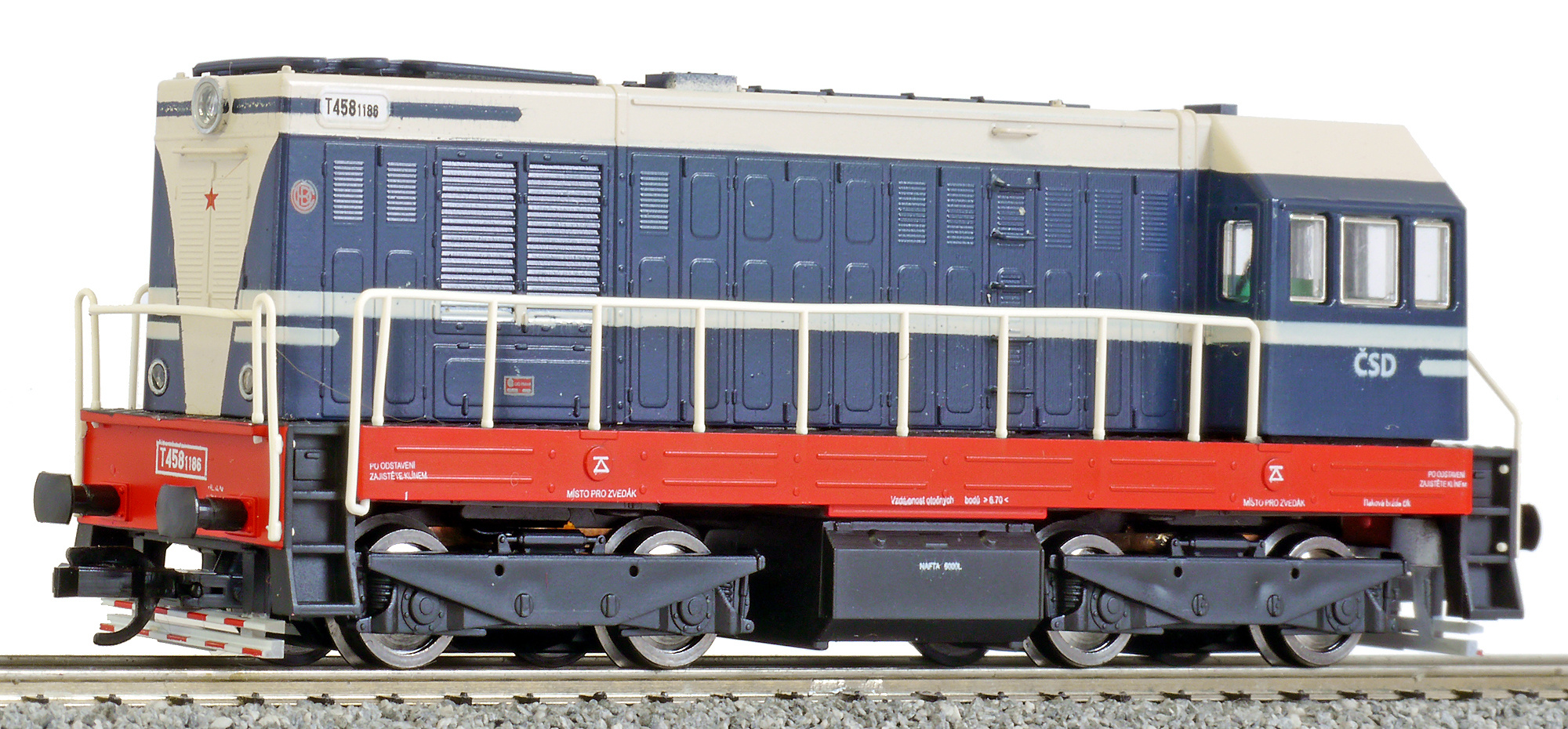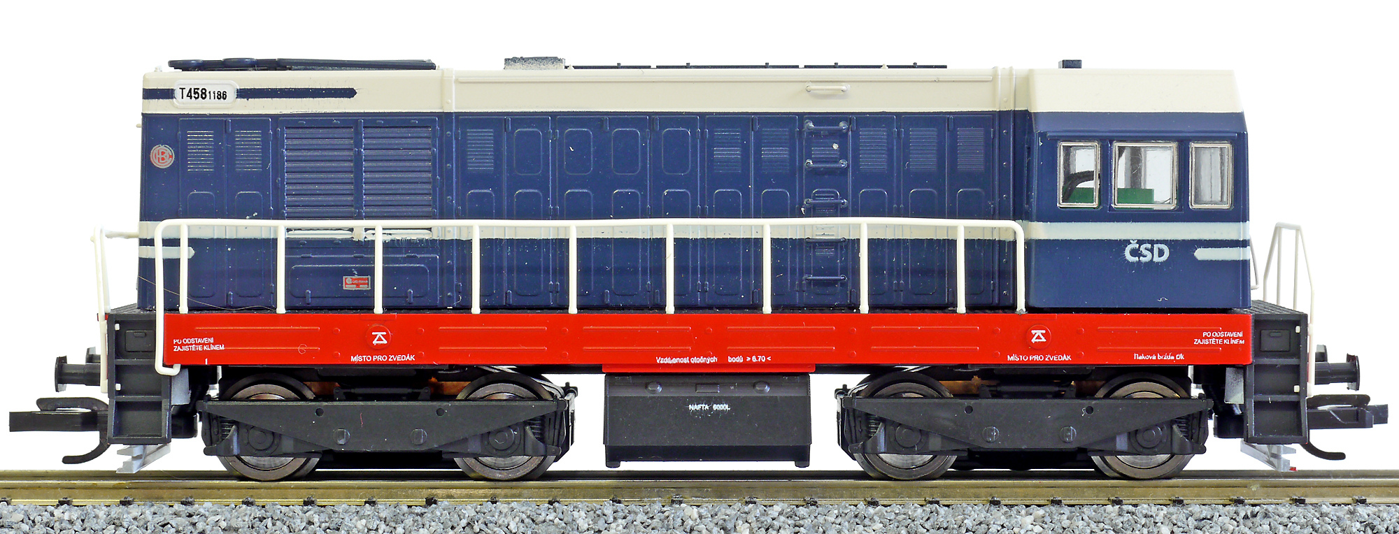 | dieselová lokomotiva v továrním nátěru černo-modrém |