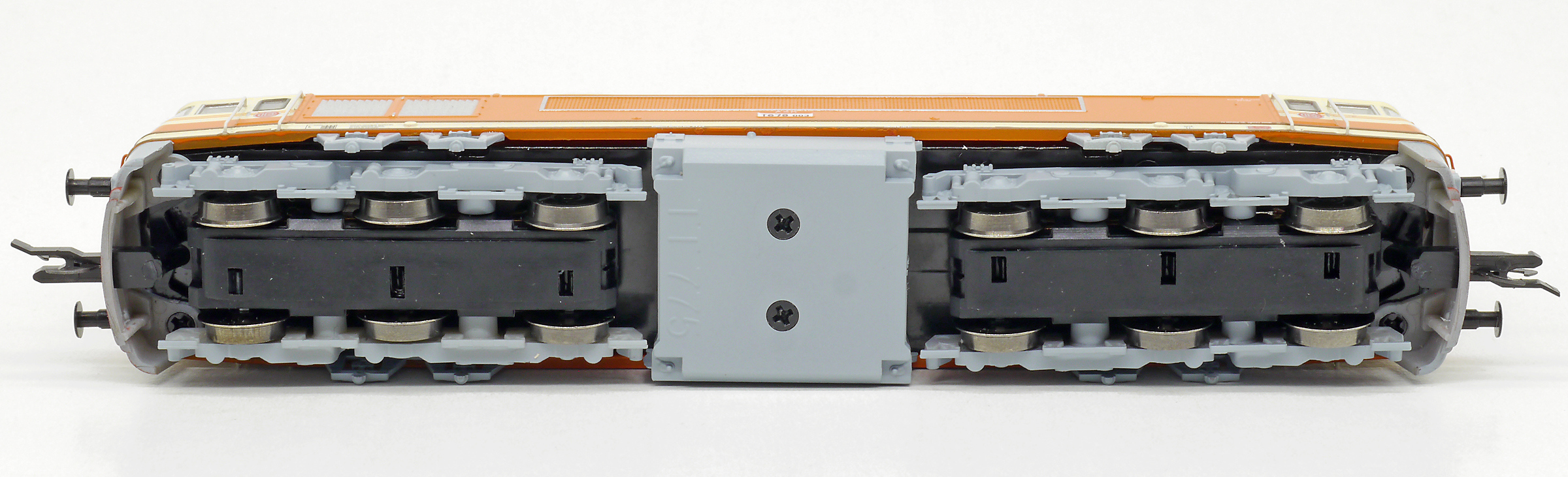 měřítko 1:120 - rozchod kolejí 12 mm osvětlení - 3 reflektory vpředu, 2 světla vzadu, přepínatelné podle směru jízdy 6 hnaných náprav 0 bandážovaných náprav kinematika krátkého spřáhla (KKK) podle normy NEM 358 digitální rozhraní podle NEM 658 s konektorem PluX16 pojezd s kuličkovými ložisky 152 mm - celková délka modelu přes nárazníky 6 - celkový počet náprav nebo rozložení náprav 225 g - hmotnost netto - pouze model