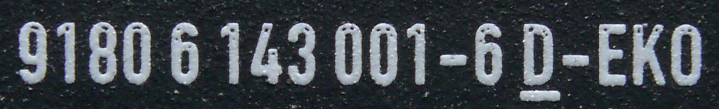 Číslo   9180 6 143 001-6  Kontrolní číslice je v pořádku  Tovární číslo