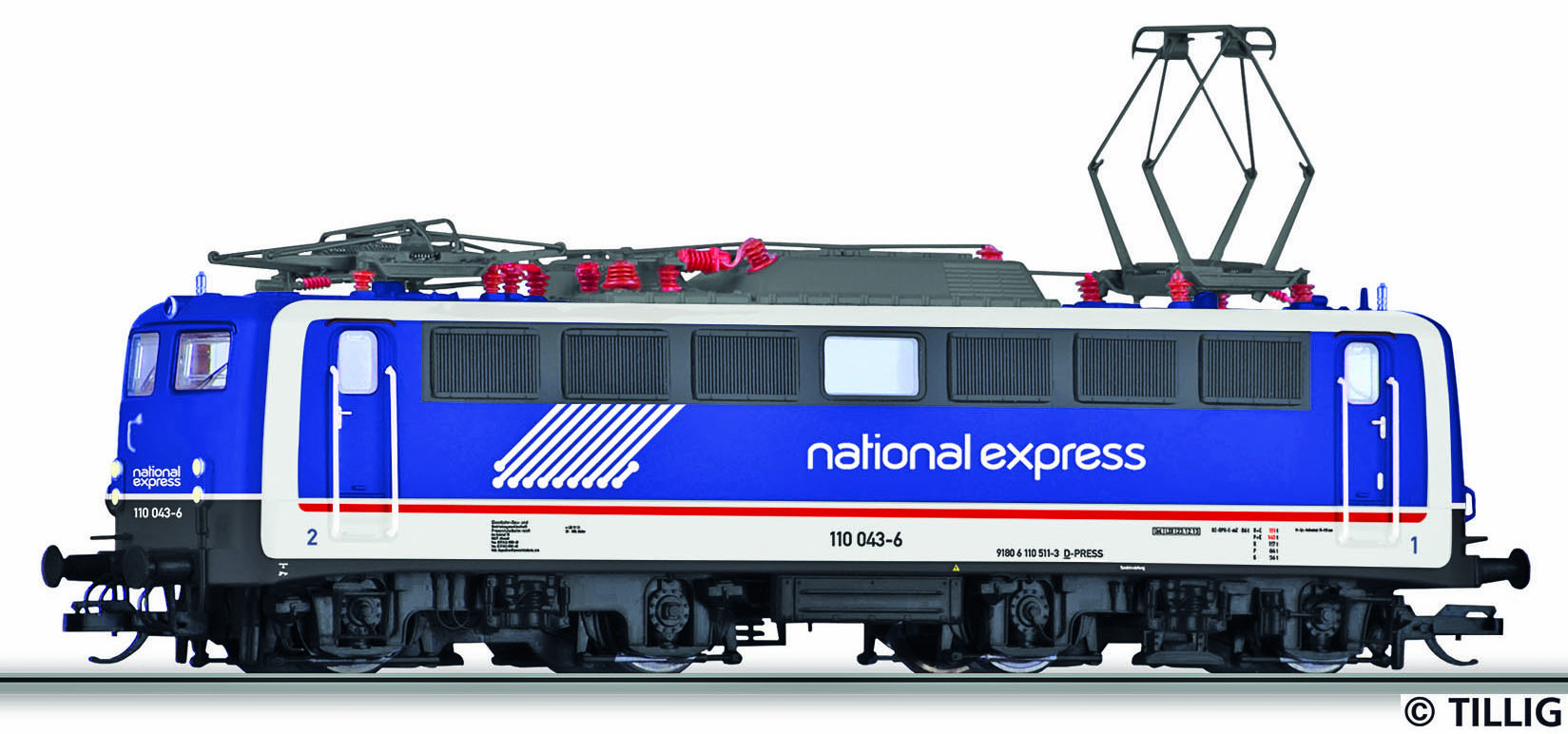 | elektrická lokomotiva modrá s bílým lemováním „national express“ |