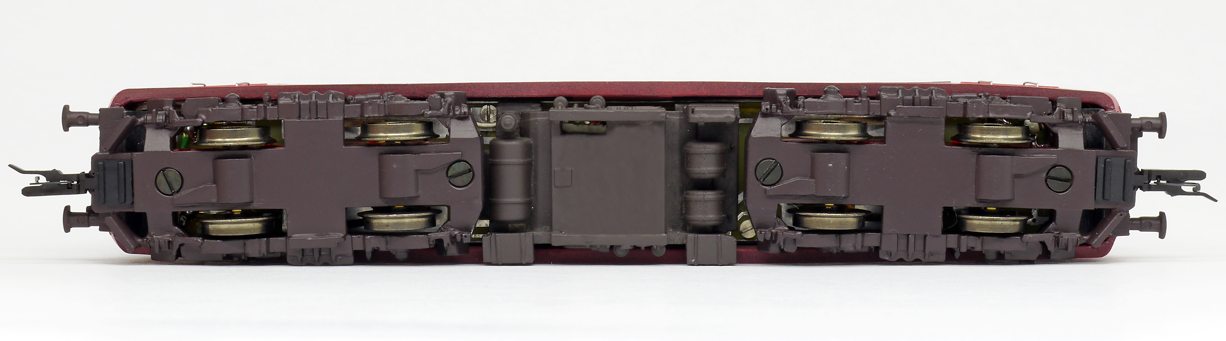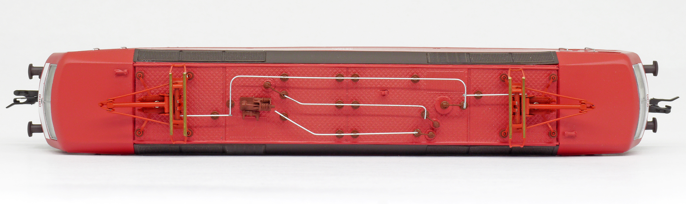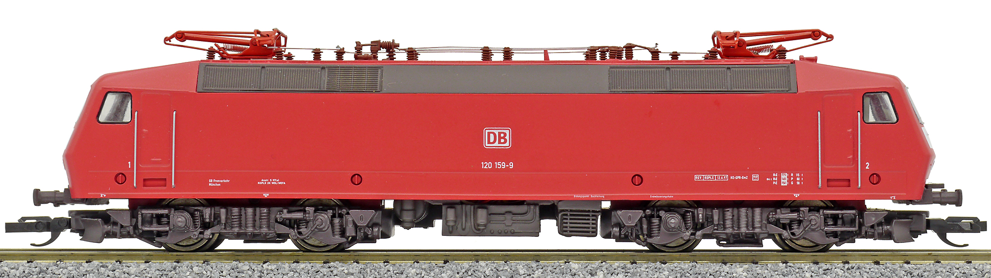 Kód   1011601  [Lokomotivy] → [Elektrické] → [BR 120] → 1011601: červená s bílým čelem, hnědé podvozky
