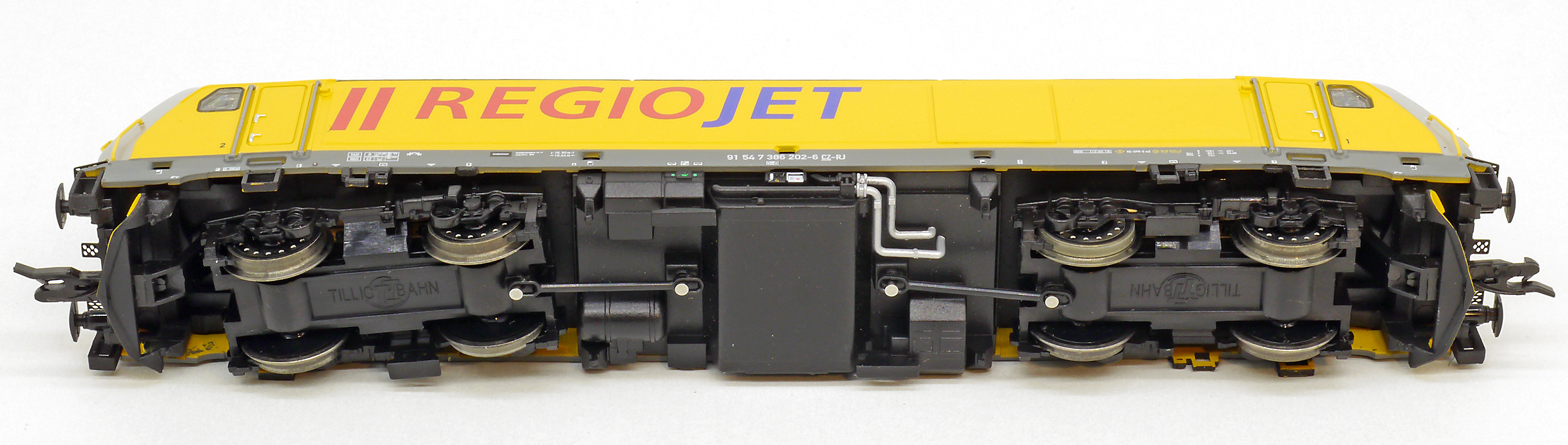 měřítko 1:120 - rozchod kolejí 12 mm osvětlení - 3 reflektory vpředu, 2 světla vzadu, přepínatelné podle směru jízdy 4 hnané nápravy 2 bandážované nápravy kinematika krátkého spřáhla (KKK) podle normy NEM 358 digitální rozhraní podle NEM 658 s konektorem PluX12 možný provoz s pantografem 158 mm - celková délka modelu přes nárazníky 4 - celkový počet náprav nebo rozložení náprav 300 g - hmotnost brutto - model včetně prodejního obalu 193 g - hmotnost netto - pouze model