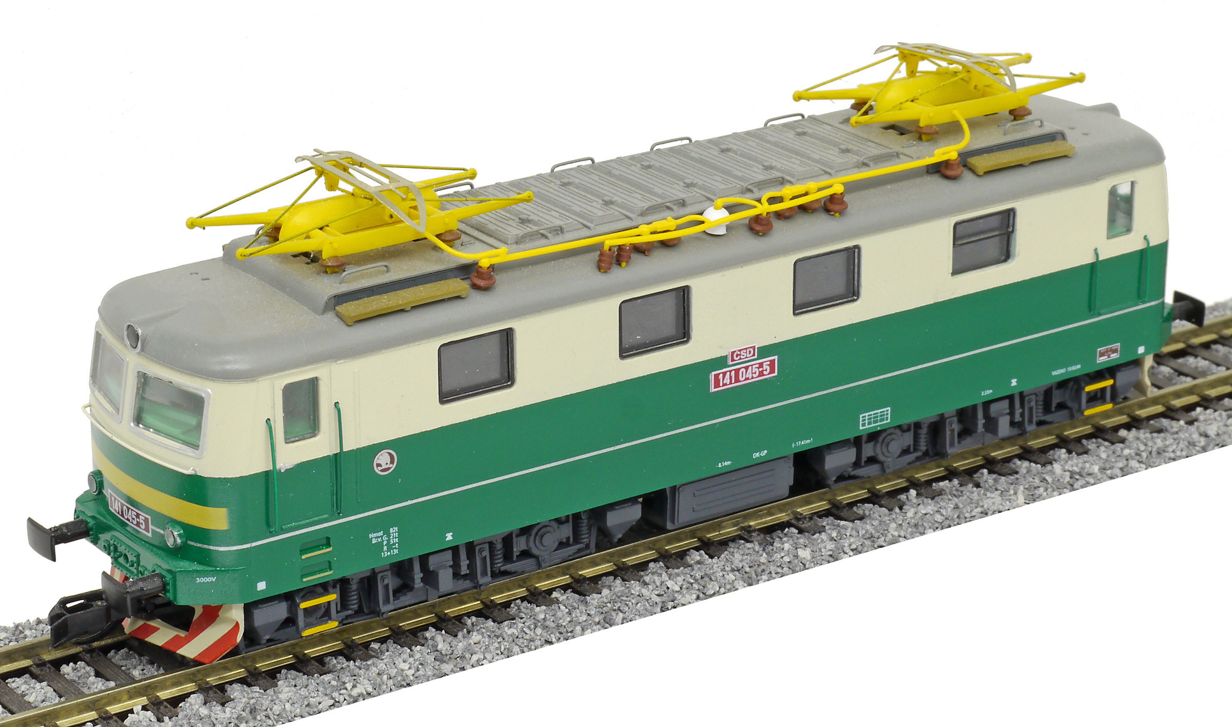 Kód   CD-141-006  [Lokomotivy] → [Elektrické] → [E499.1/E469.1] → CD-141-006: elektrická lokomotiva v odstínech zelené, šedá střecha, žlutý výstražný pruh