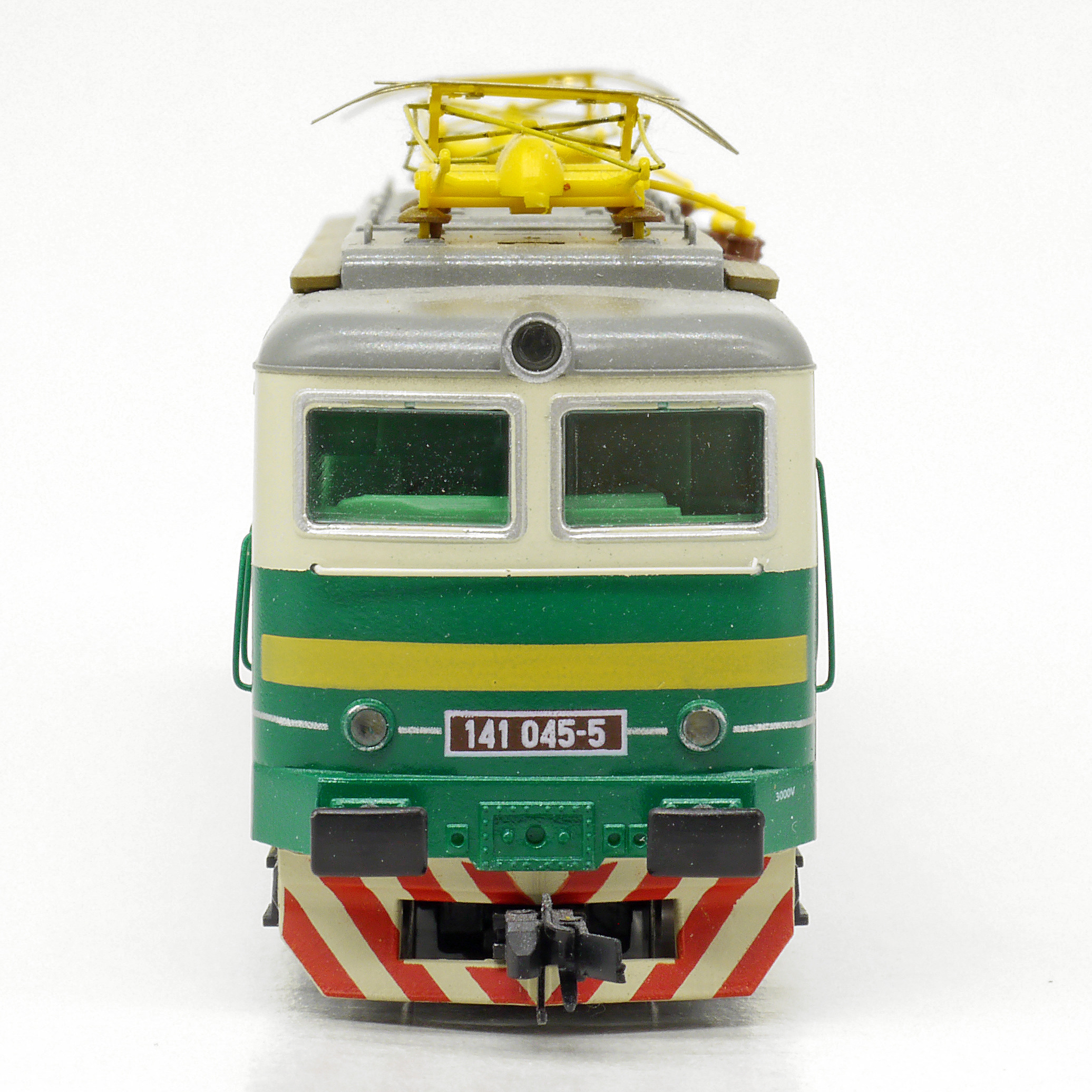 Kód   TT141-E1056  [Lokomotivy] → [Elektrické] → [E499.1/E469.1] → TT141-E1056: elektrická lokomotiva zelená-slonová kost, šedá střecha, oranžový výstražný pruh