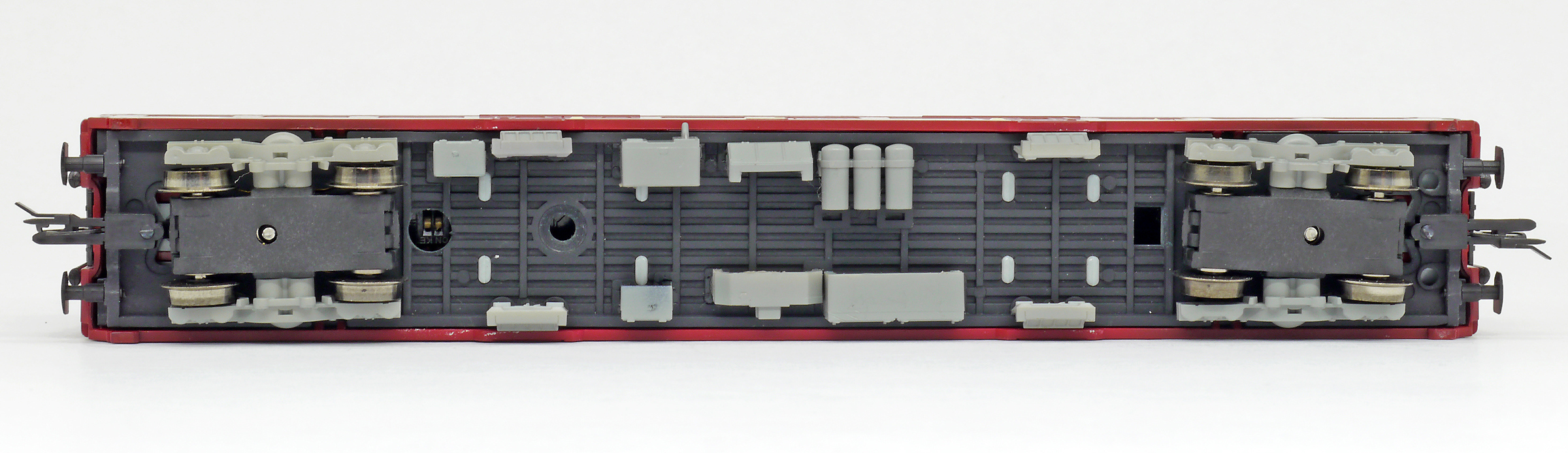 měřítko 1:120 - rozchod kolejí 12 mm osvětlení - 2 reflektory vpředu, 2 světla vzadu, přepínatelné podle směru jízdy vnitřní interiér vozu instalováno osvětlení interiéru kinematika krátkého spřáhla (KKK) podle normy NEM 358 digitální rozhraní podle NEM 651 s konektorem 6pin pojezd s kuličkovými ložisky 168 mm - celková délka modelu přes nárazníky 4 - celkový počet náprav nebo rozložení náprav 125 g - hmotnost brutto - model včetně prodejního obalu 50 g - hmotnost netto - pouze model