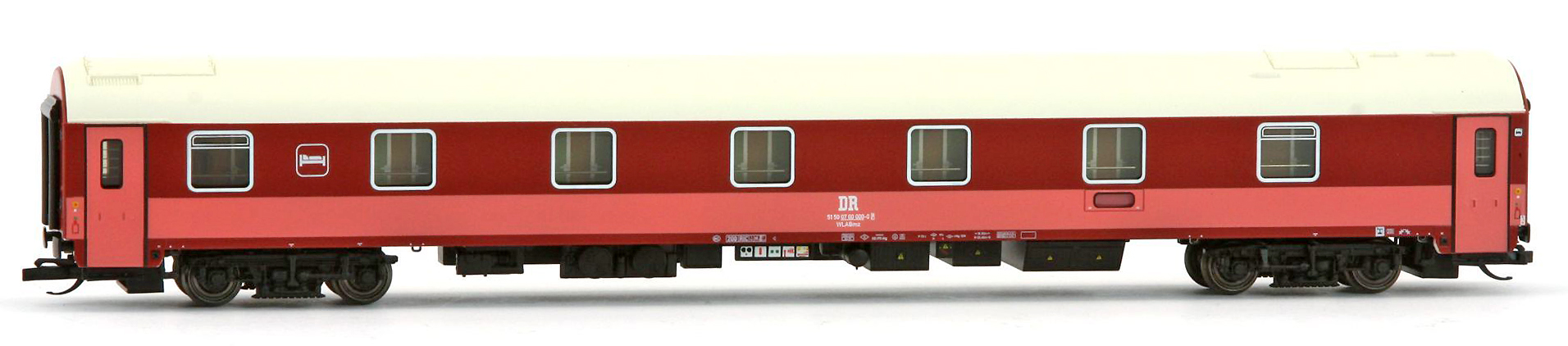 | lůžkový vůz vínově červený-růžový s šedou střechou, prototyp |