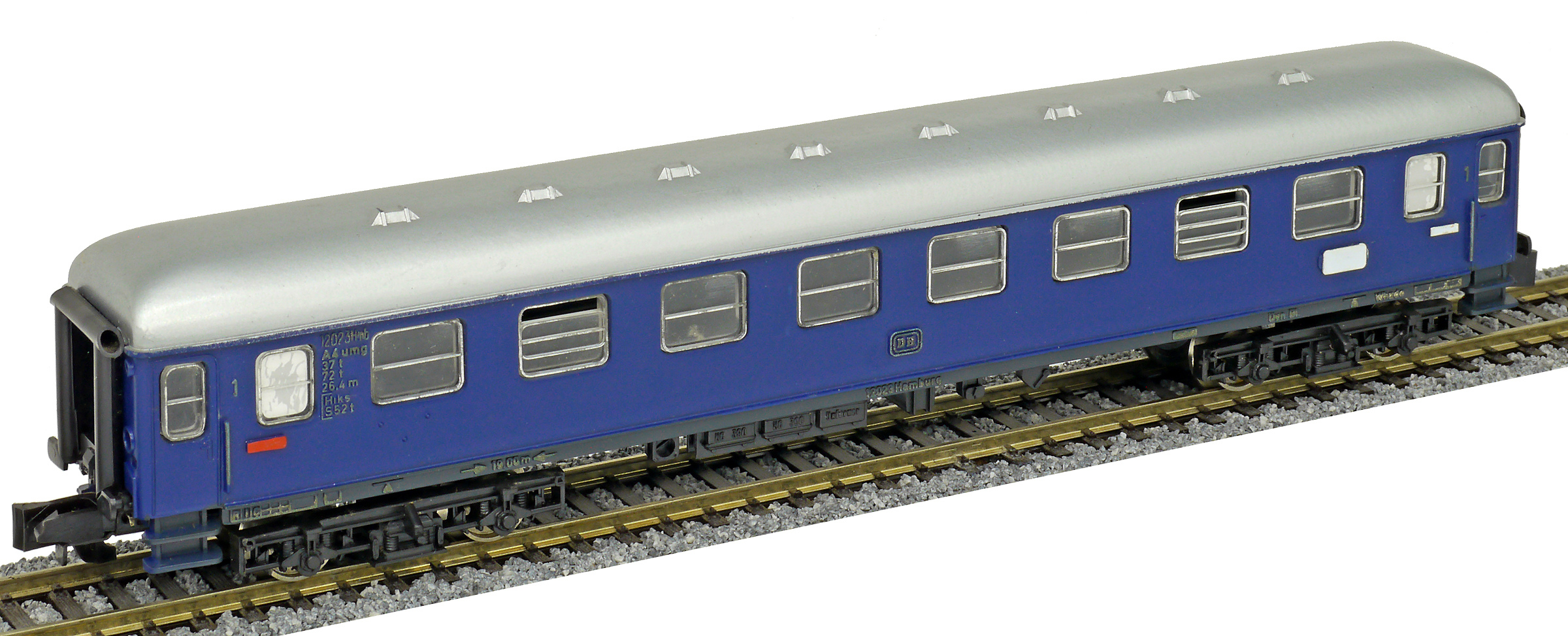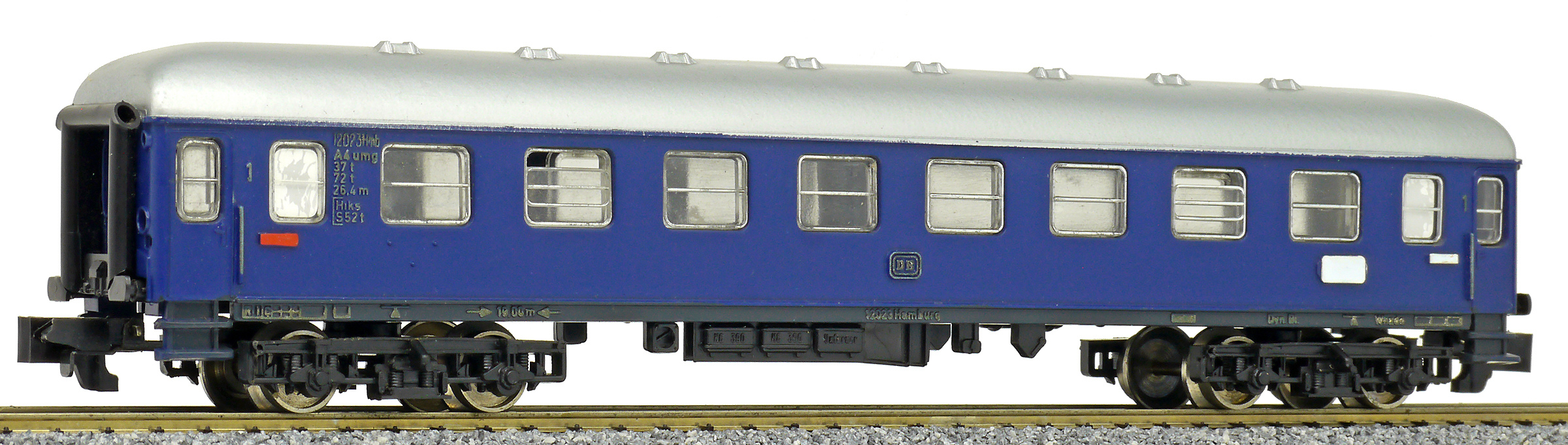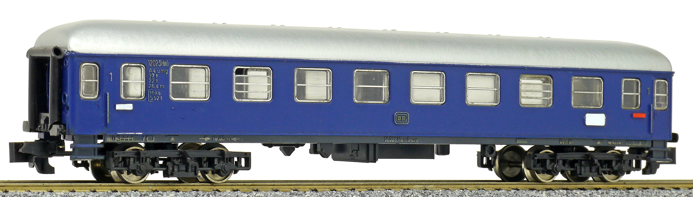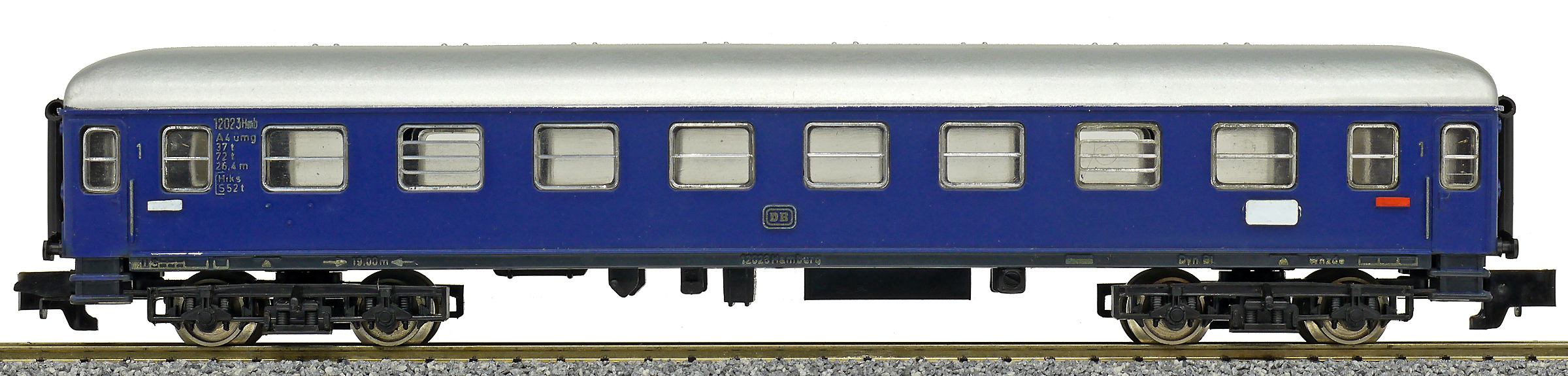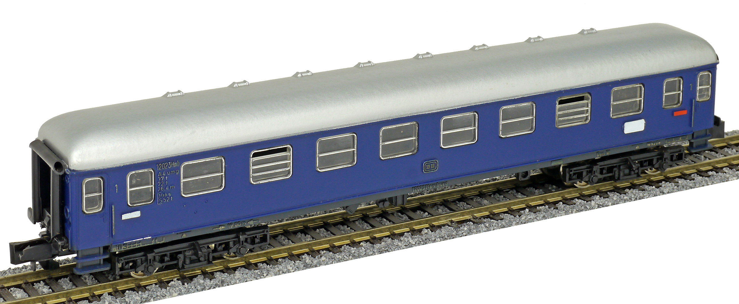 Kód   D 1205  [Osobní vozy] → [Rychlíkové] → [ostatní] → D 1205: rychlíkový vůz modrý s šedou střechou 1./2. tř. „Rheingold“