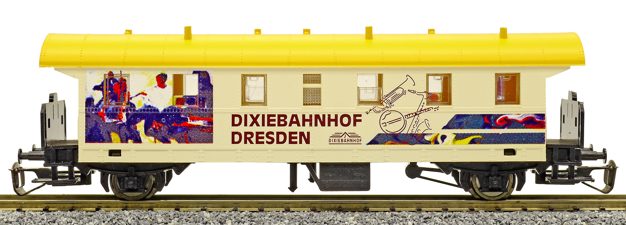 Popis   osobní vůz krémový s oranžovou střechou „Dixiebahnhof Dresden“