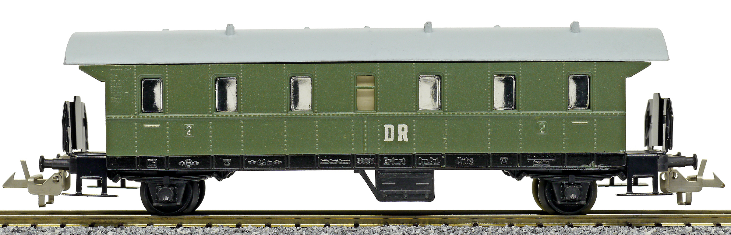 | osobní vůz zelený s šedou střechou 2. tř., bez brzd |
