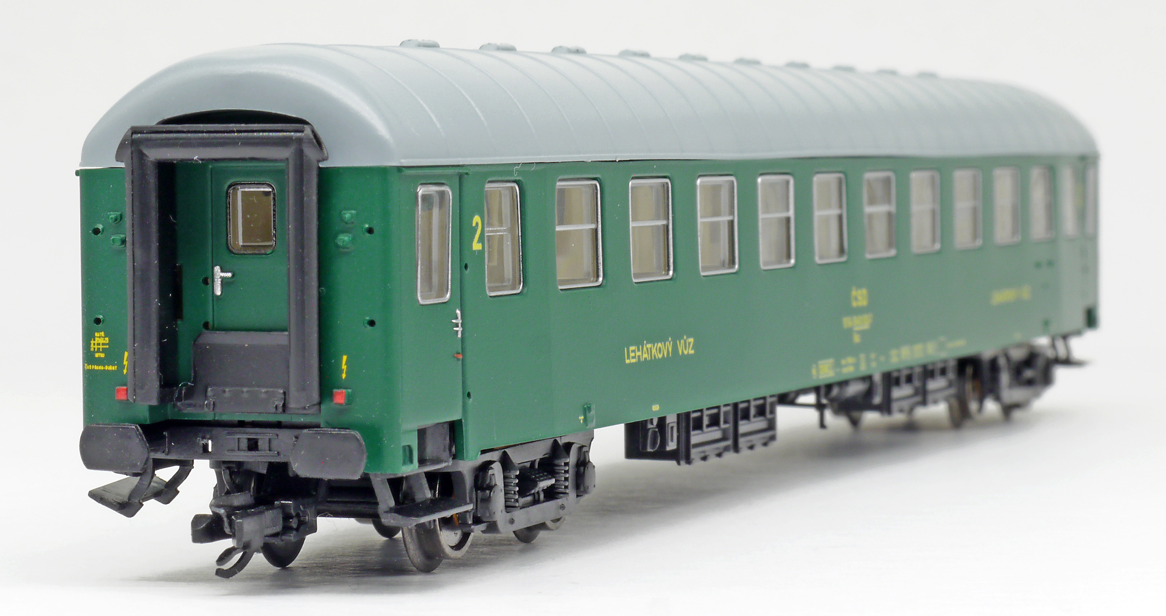 | lehátkový vůz zelený s šedou střechou 2. tř., Praha |