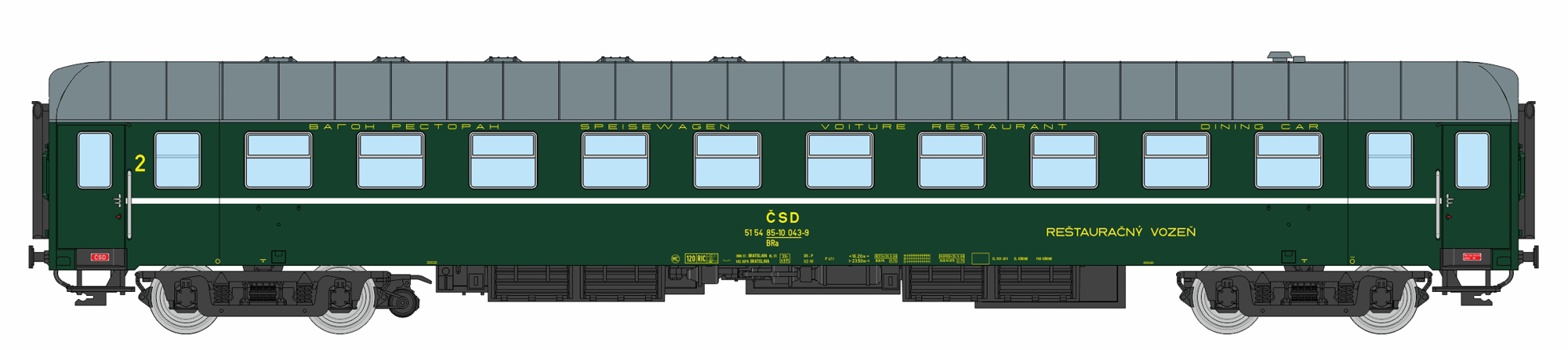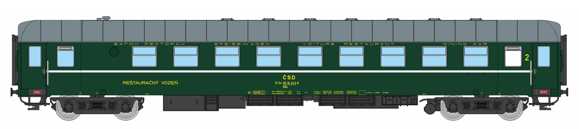 | restaurační vůz zelený s šedou střechou 2. tř. Bratislava |