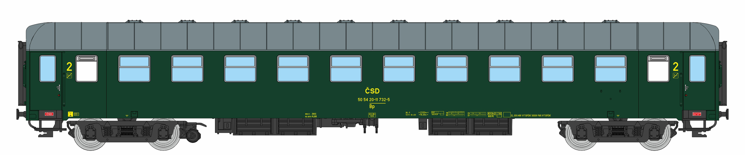 | • 50 54 20-11 732-5 | → | vůz druhé třídy 10 oddílů |