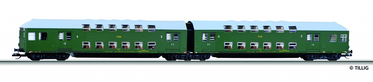 Kód   13735  [Osobní vozy] → [Patrové] → [DB 13] → 13735: zelený s šedou střechou, dvouvozová souprava