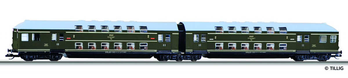 Kód   03733  [Osobní vozy] → [Patrové] → [DB 13] → 03733: dvoudílná jednotka zelená s rezavou střechou 2. tř
