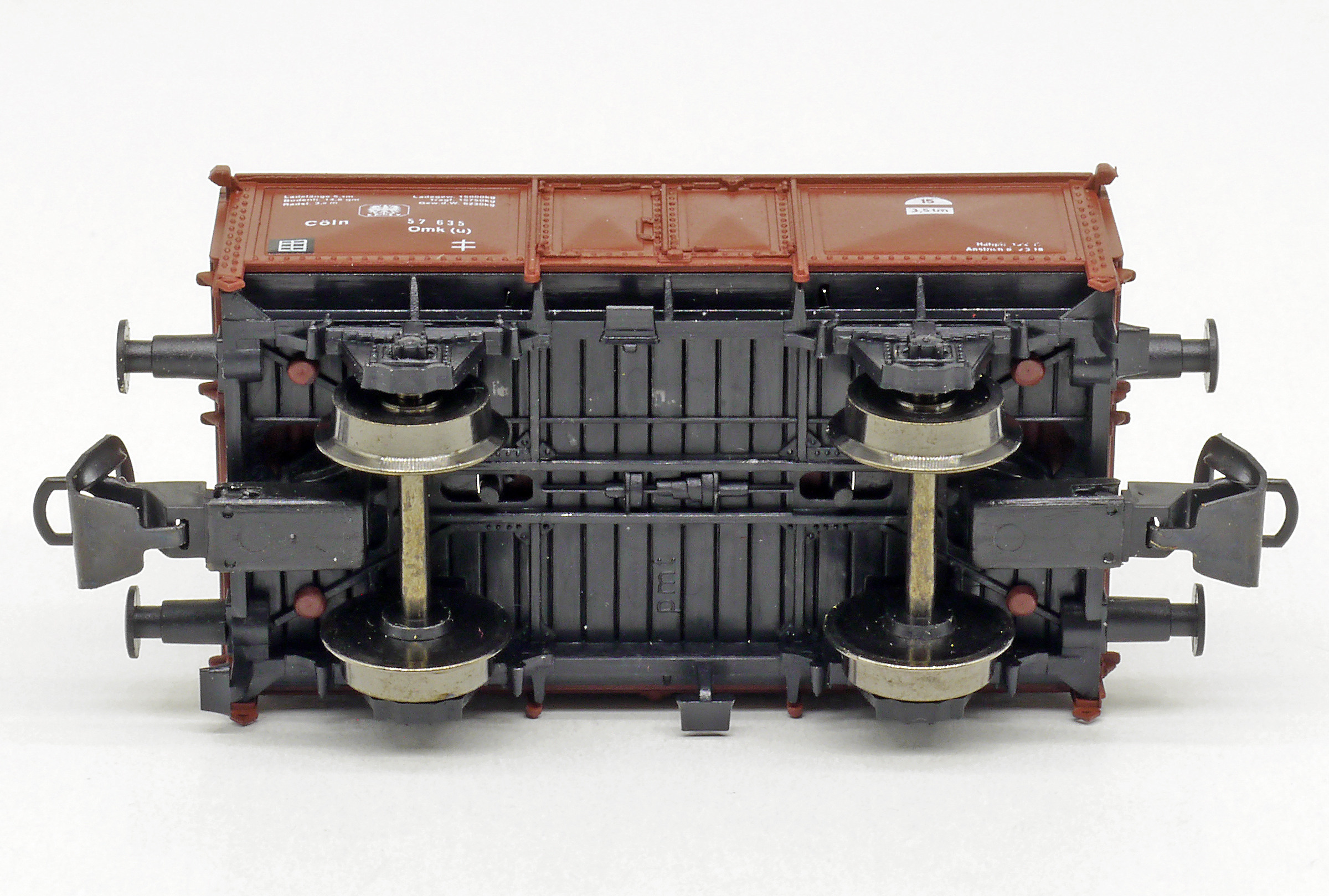 Kód   65146  [Nákladní vozy] → [Otevřené] → [2-osé O] → 65146: otevřený nákladní vůz červenohnědý, černý pojezd