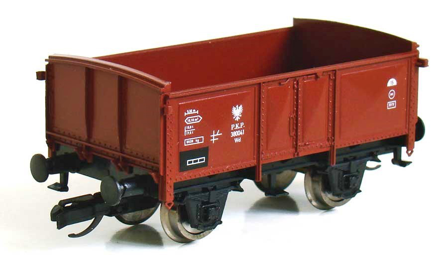 otevřený nákladní vůz červenohnědý, černý pojezd
